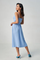 Елегантний сарафан-міді з американського крепу поєднує комфорт і вишуканість.
