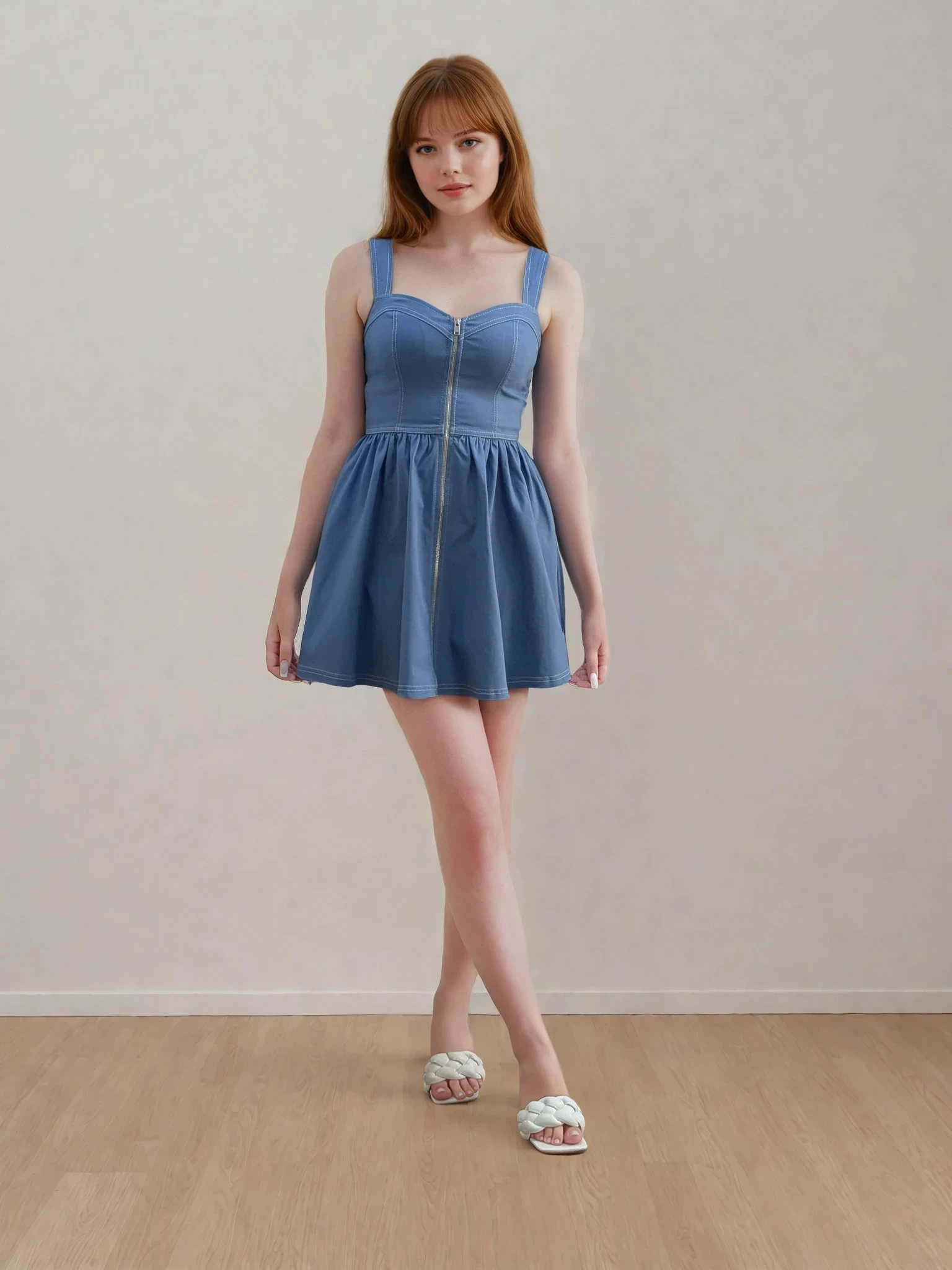 Додайте до свого гардеробу стилю та грайливості з нашим сарафаном міні з джинс-бенгаліну на блискавці. Це ідеальний вибір для тих, хто цінує поєднання комфорту, оригінального дизайну та жіночності.