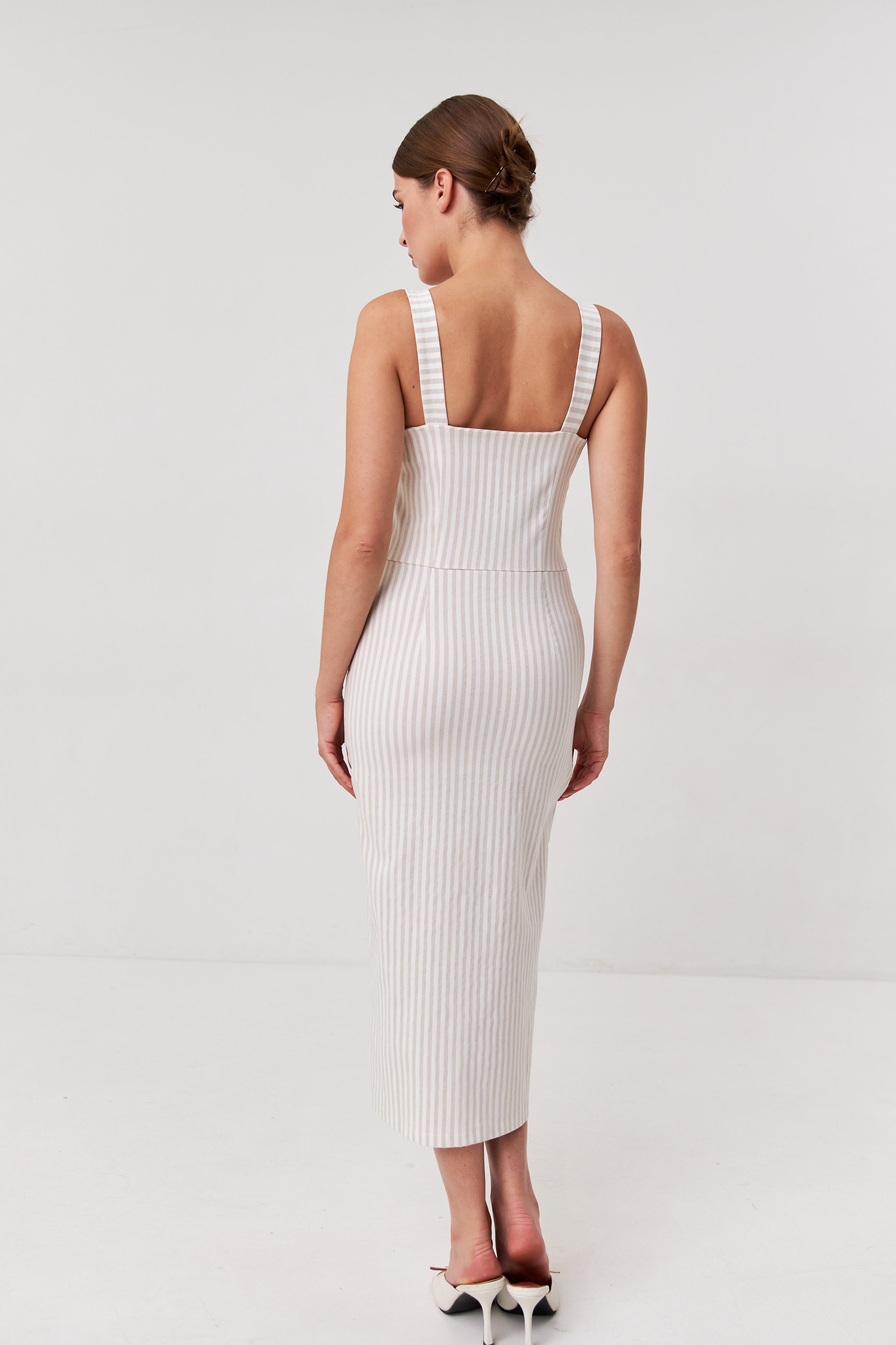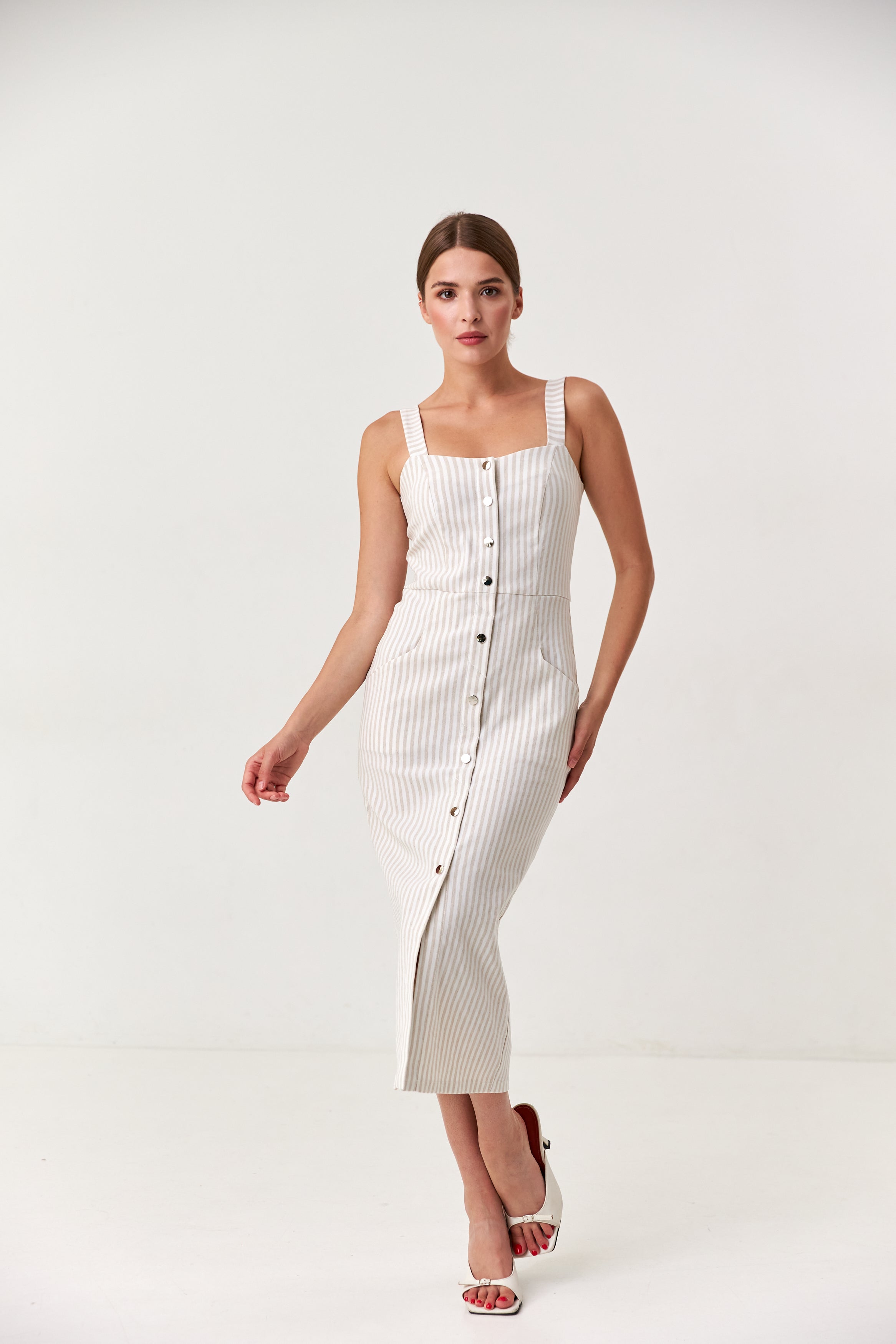 Лаконічні лінії без зайвого декору, що дозволяють комбінувати сарафан з різними аксесуарами та взуттям.