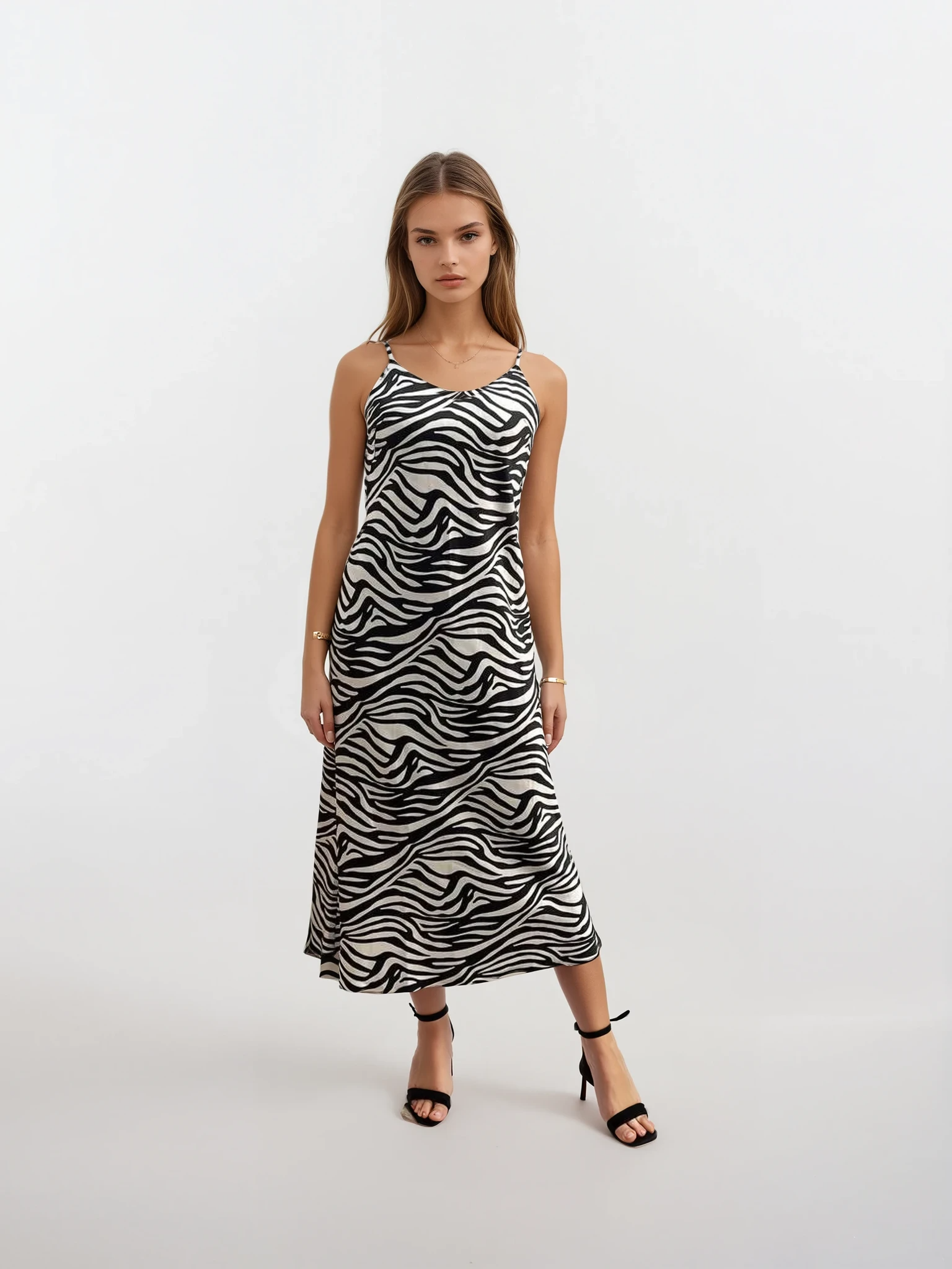 Літній сарафан на тонких бретелях із принтом — це легкість, жіночність і стиль в одному виробі. Завдяки м’якому силуету та ніжному матеріалу, він дарує комфорт у найспекотніші дні. Актуальний принт додає свіжості образу, а витончений фасон ідеально підкреслює фігуру. Деталі: Матеріал: легкий (шовк армані) Крій: приталений Довжина: максі Бретелі: тонкі, часто регульовані Принт: тваринний Переваги: Ідеальний для літа та відпочинку Підходить для повсякденних і святкових образів Поєднується з сандалями, капелюхами, легкими жакетами