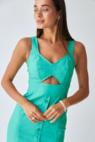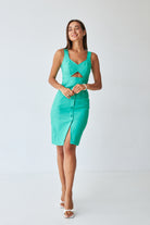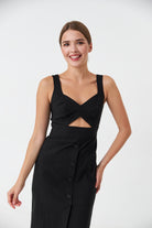 Декоративний виріз у зоні декольте додає образу оригінальності й візуально видовжує шию
