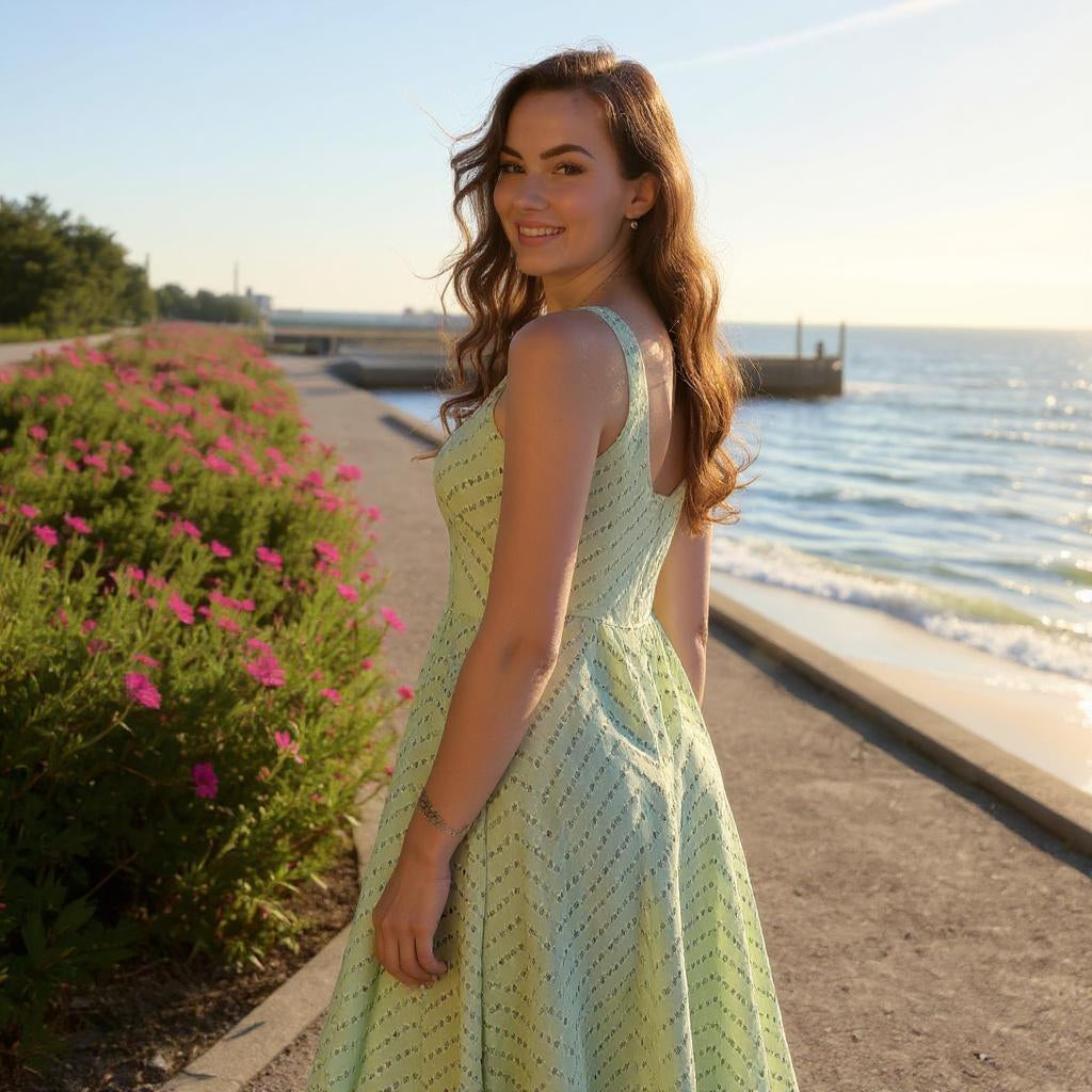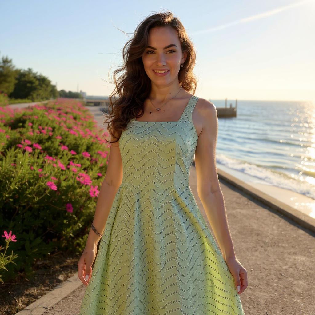 Модель ідеально підходить як для прогулянок у місті, так і для особливих подій. Натуральна тканина приємна до тіла та дозволяє шкірі дихати. Лаконічний дизайн легко доповнити аксесуарами, створюючи різні варіанти стилю — від ніжного романтичного до більш яскравого та сміливого.