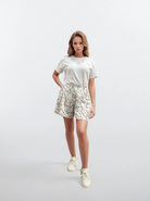 Легкі жіночі шорти з м'якого софту з абстрактним принтом.