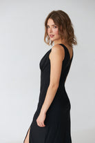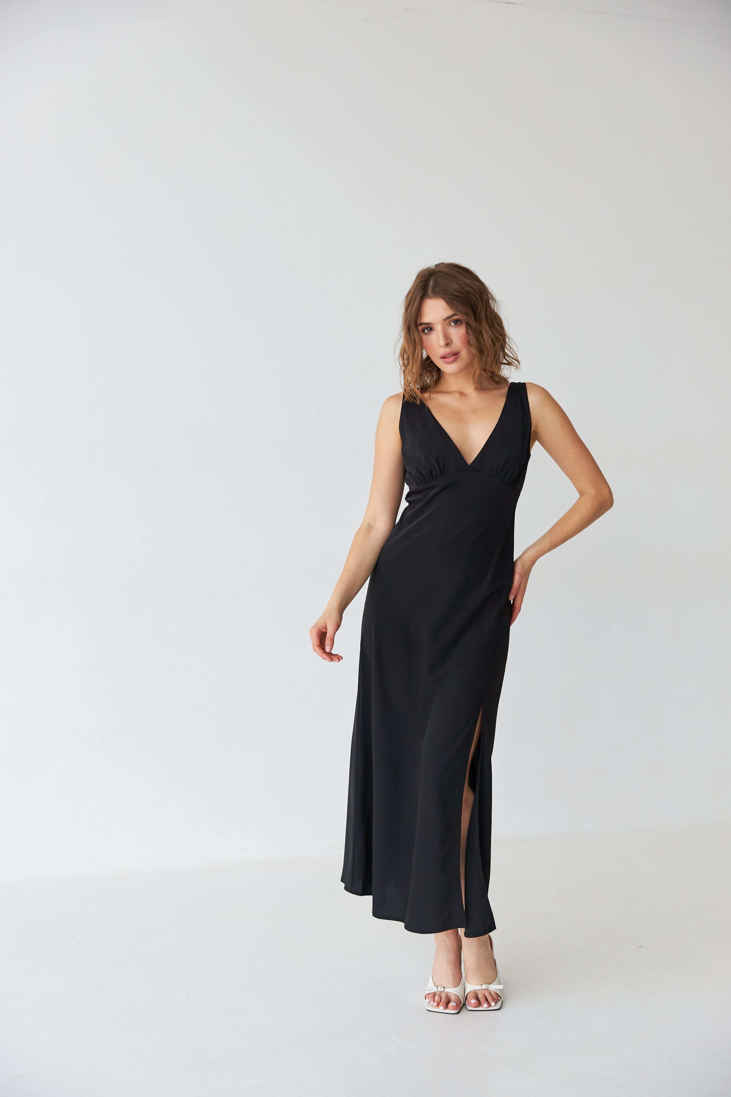 Глибокий боковий розріз до стегна — додає образу динаміки та ефектності при ході