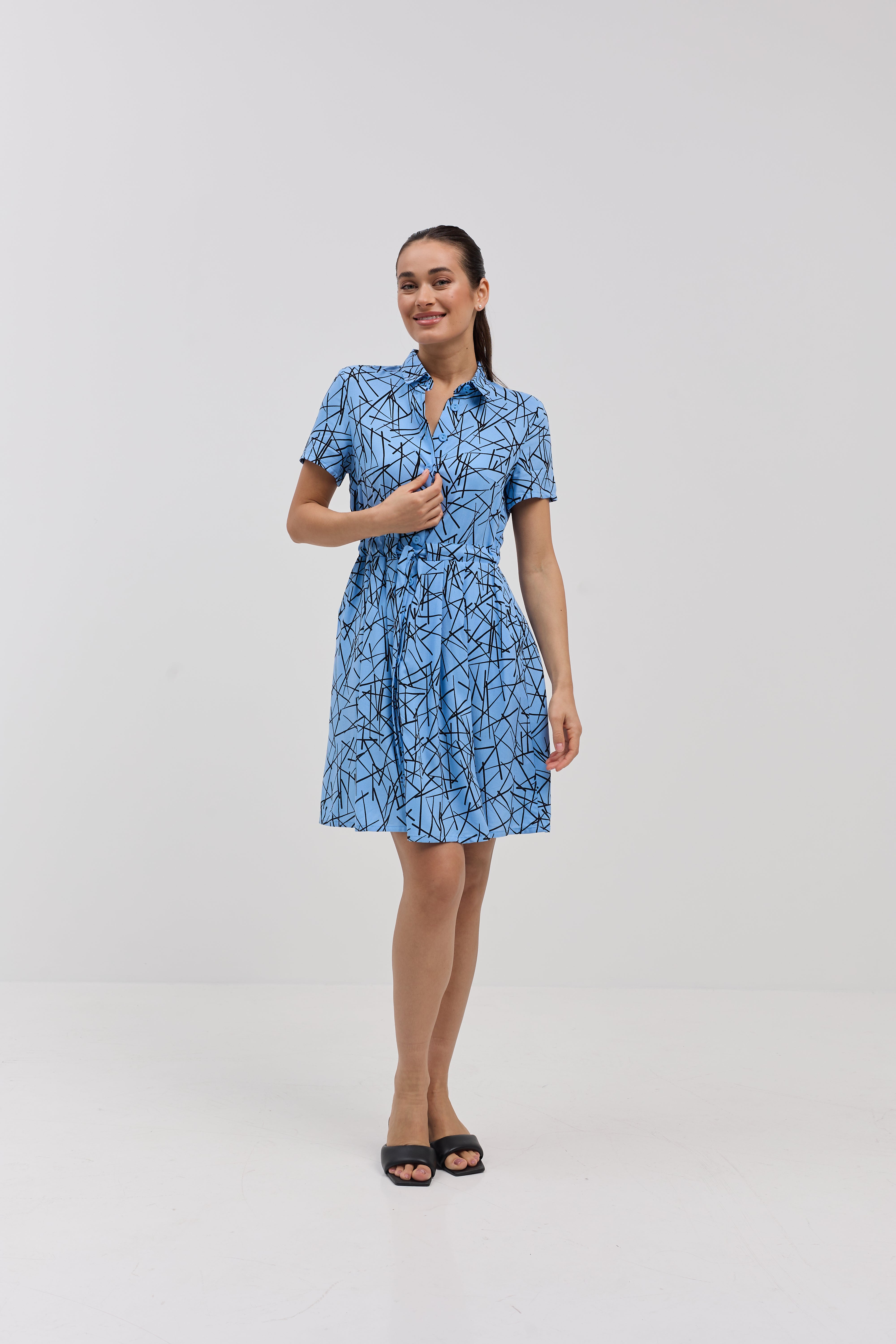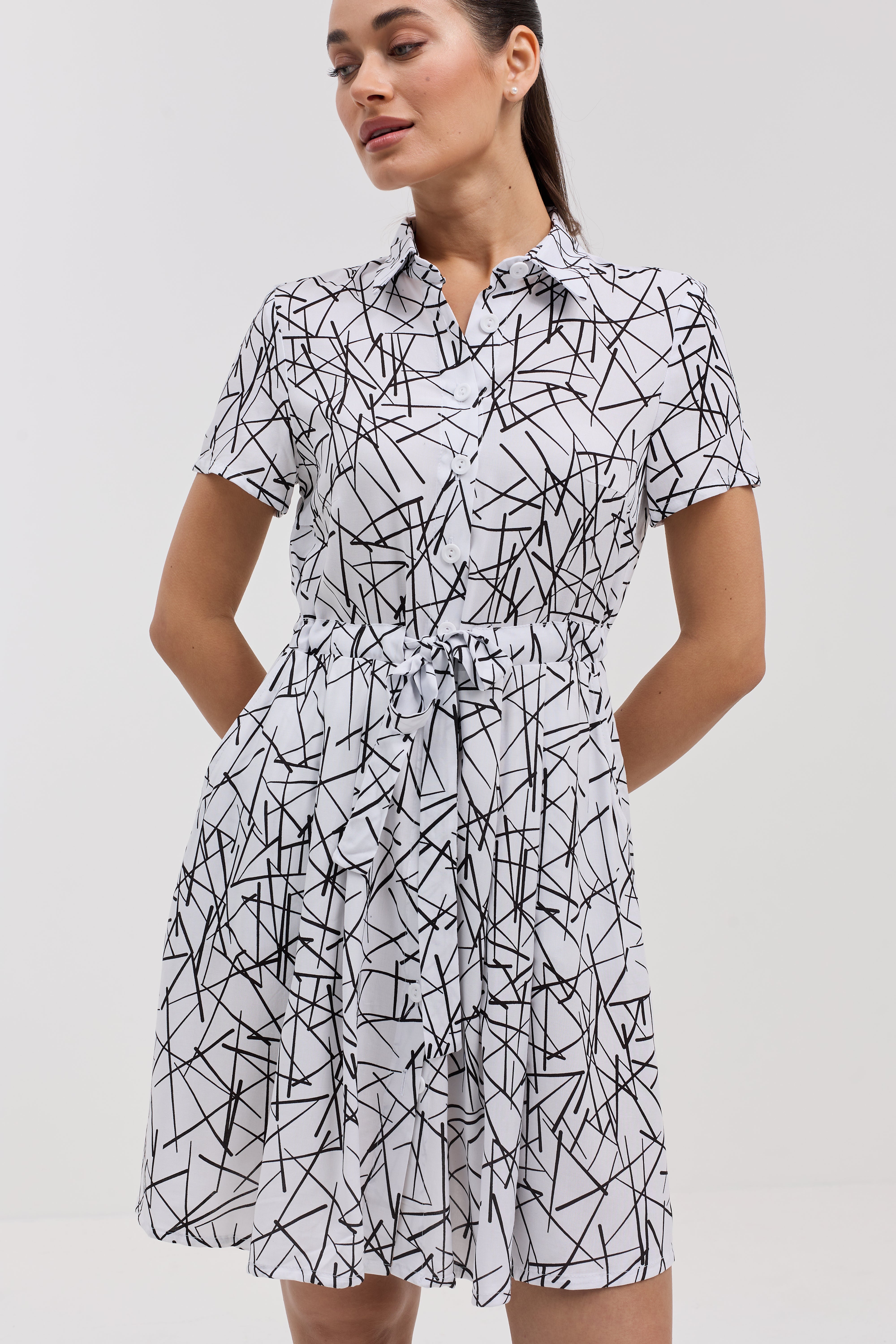 Сукня міні на ґудзиках із поясом зі штапелю