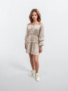 Пориньте в атмосферу літньої легкості та жіночності з нашою чарівною міні-сукнею, виготовленою з м'якої та повітряної тканини штапель. Цей матеріал ідеально підходить для теплої погоди, забезпечуючи комфорт та ніжні відчуття на шкірі. Романтичний квітковий принт на світлому тлі додає сукні свіжості та легкості.