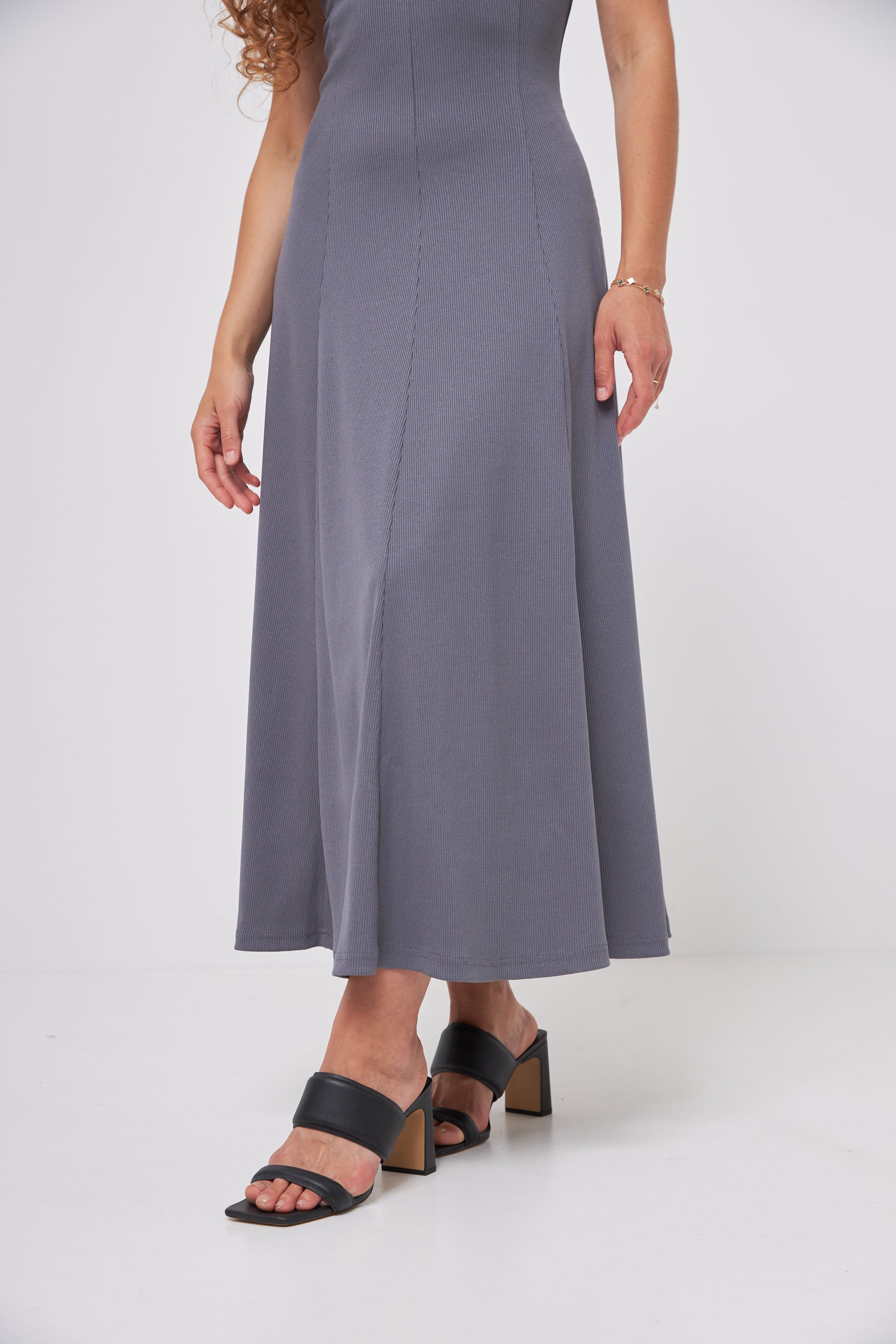 Стильна жіноча сукня міді, виконана з еластичної тканини у дрібний рубчик. Завдяки цій фактурі, сукня чудово сідає по фігурі, створюючи витончений та елегантний силует, а також забезпечує комфорт під час носіння.