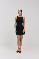Ефектна відкрита спина — головний акцент образу.