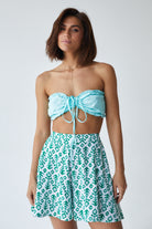 Дизайн: рюші по верхньому та нижньому краю, зібраний центр, відкриті плечі