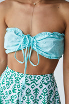 Легкий літній топ із натурального жатого льону. Модель без бретелей, з м’якою фіксацією на кулісці спереду — дозволяє регулювати глибину драпування та посадку.
