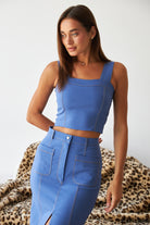 Цей стильний топ від Wear Me поєднує в собі елегантність і комфорт. Виготовлений з м'якого джинс бенгаліну, він приємно прилягає до тіла, підкреслюючи фігуру. Універсальний дизайн дозволяє поєднувати топ з різними елементами гардеробу — від джинсів до спідниць.