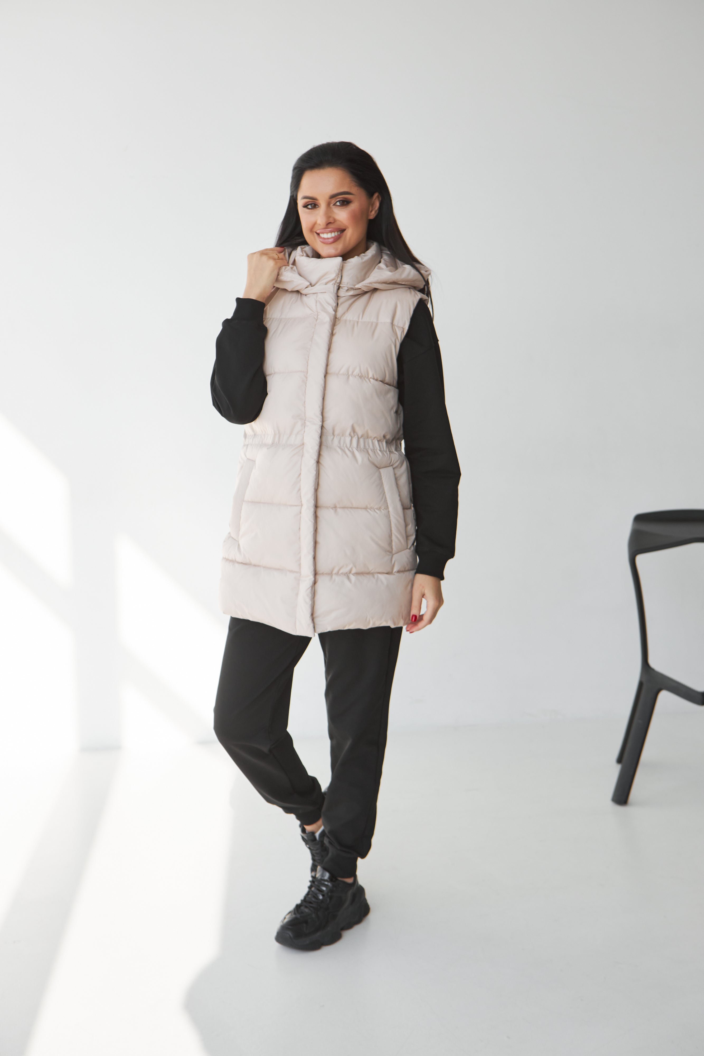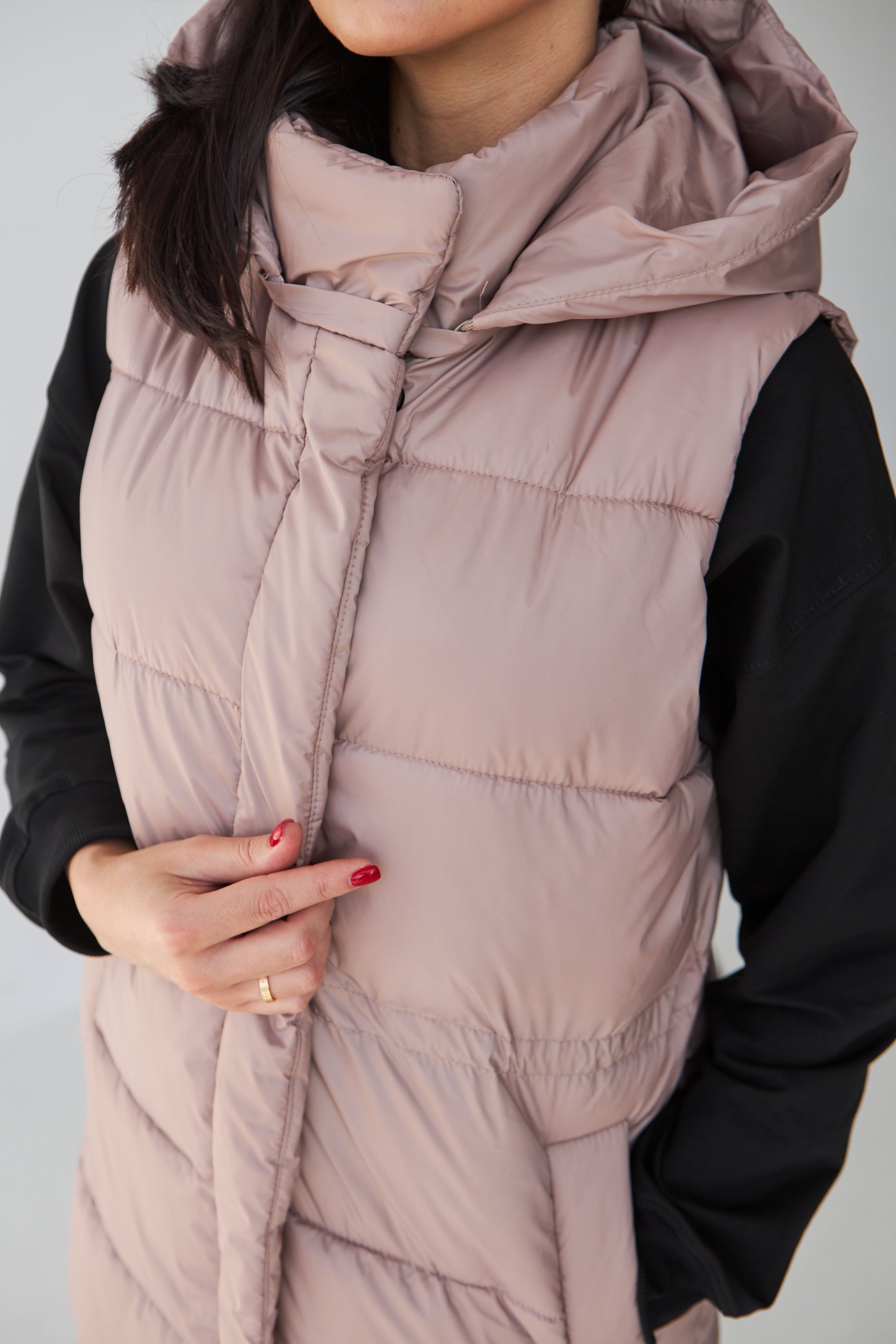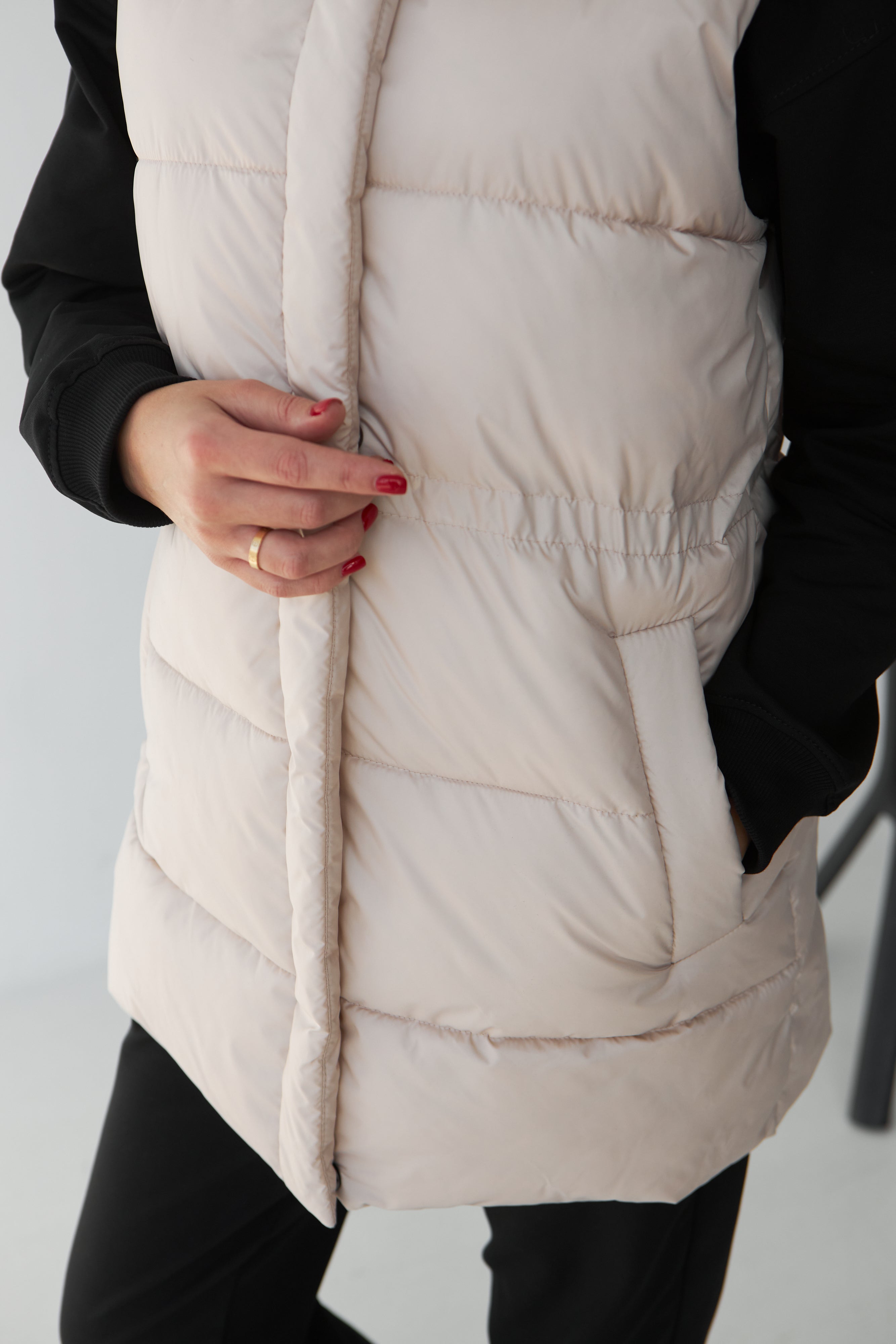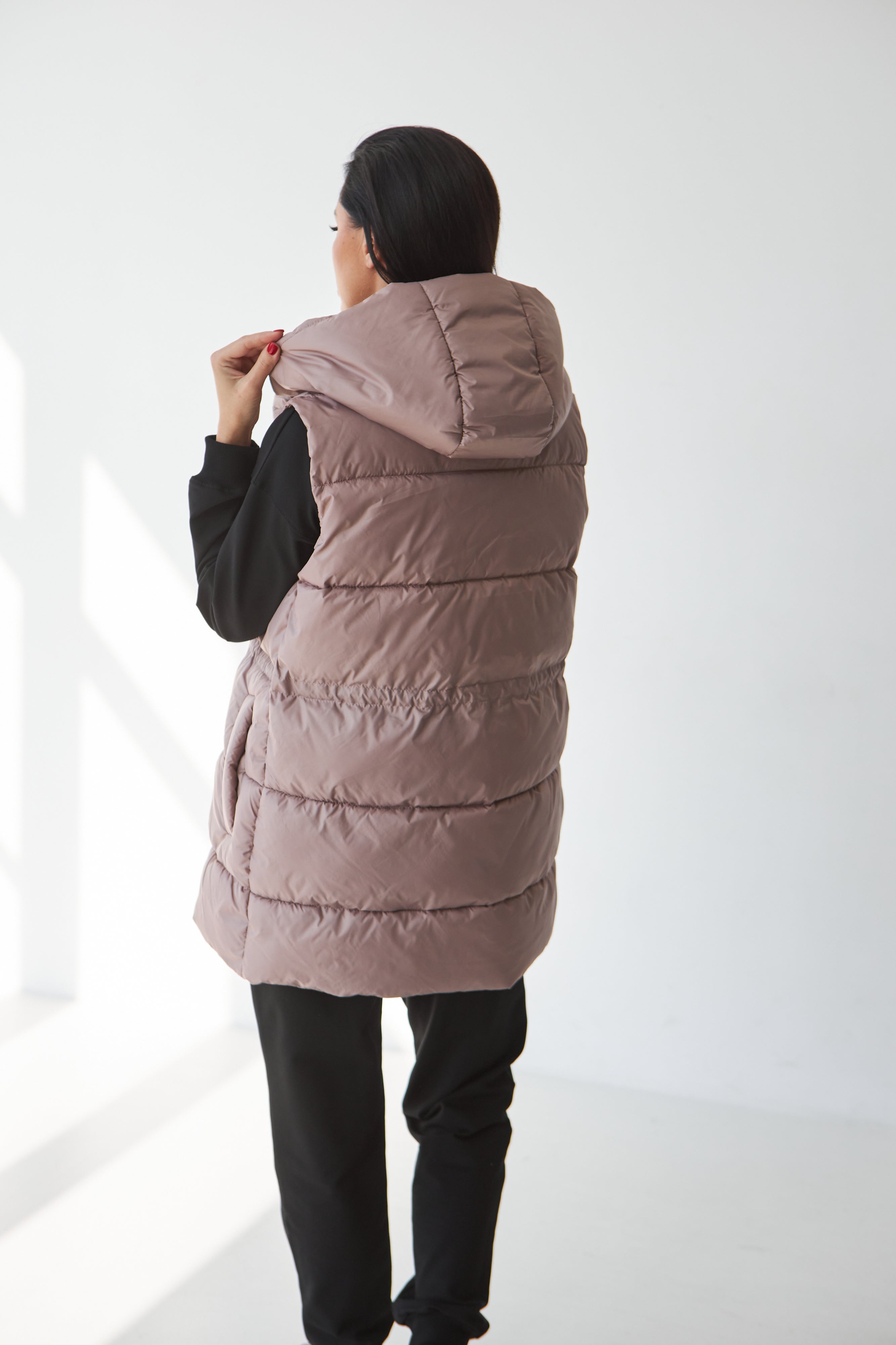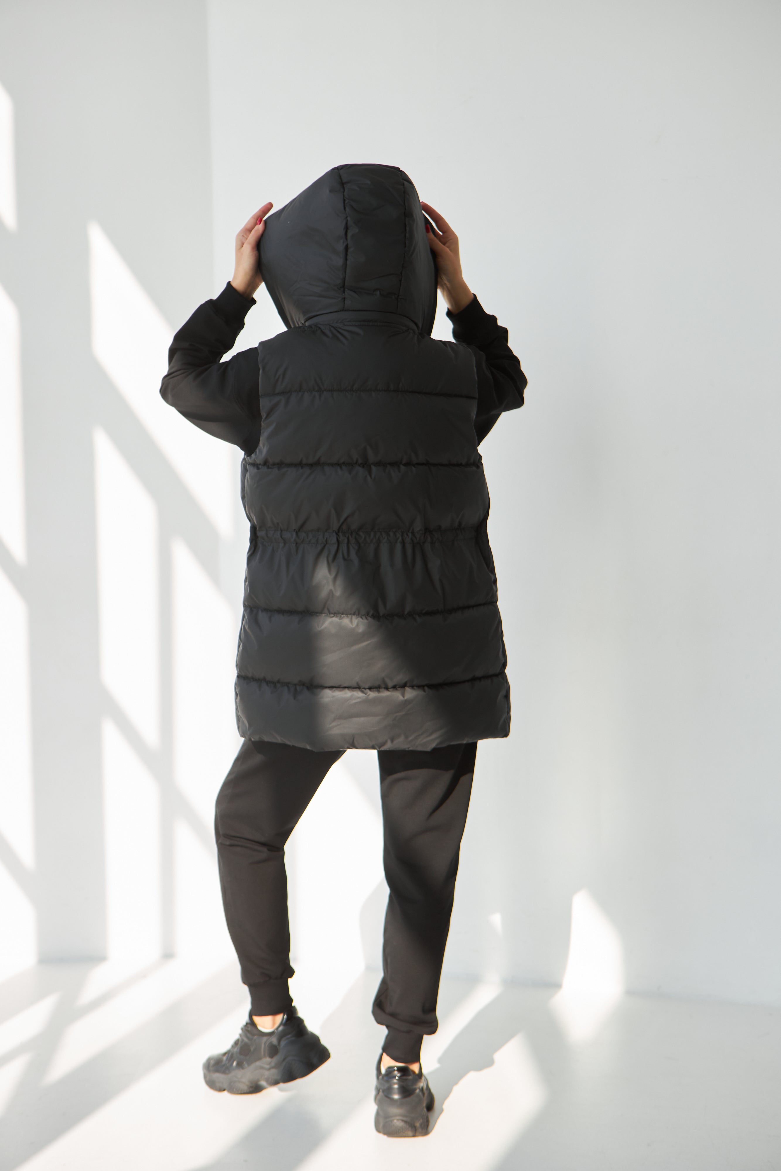 Жилет подовжений на кулісці з капюшоном і кишенями