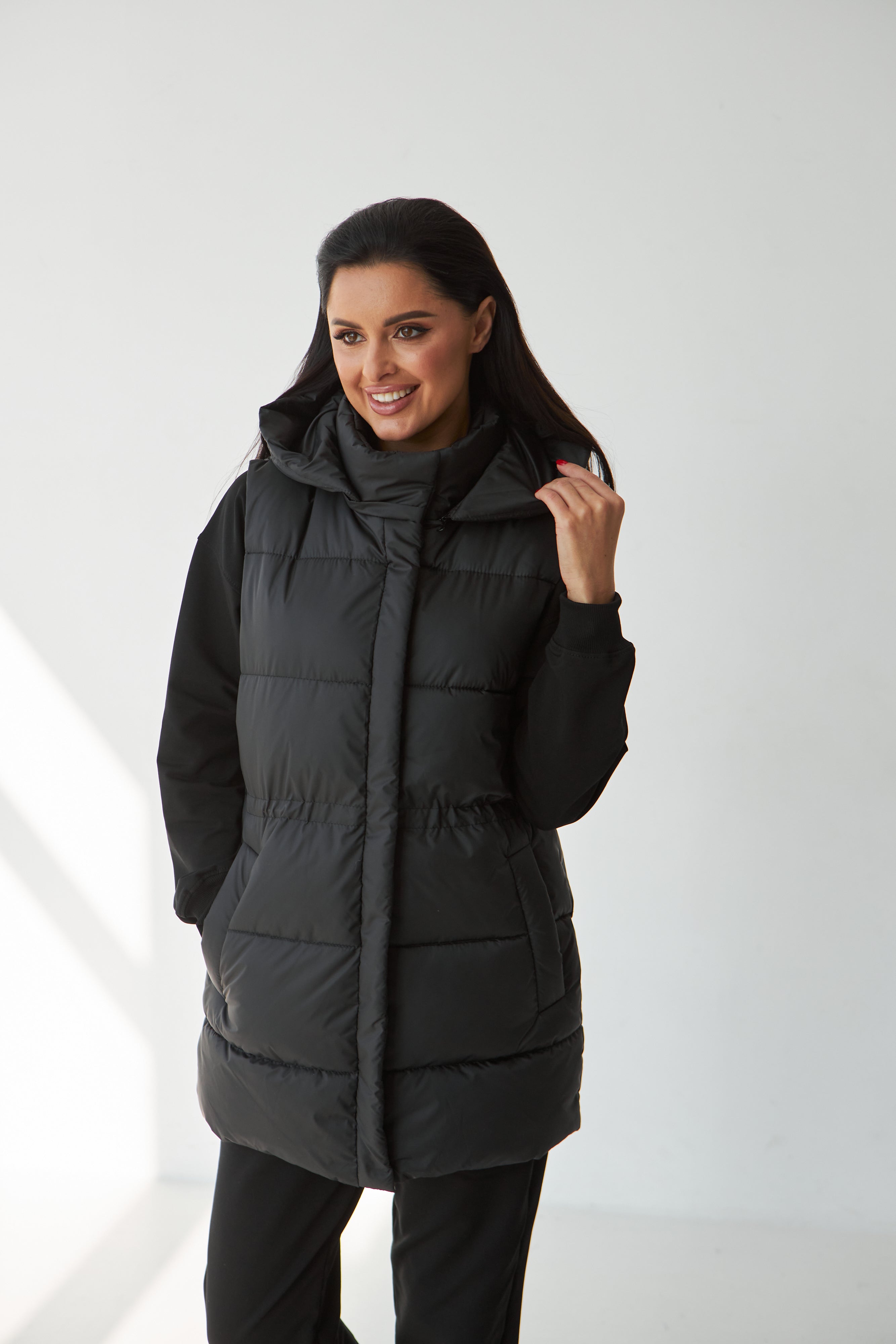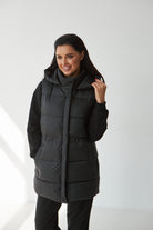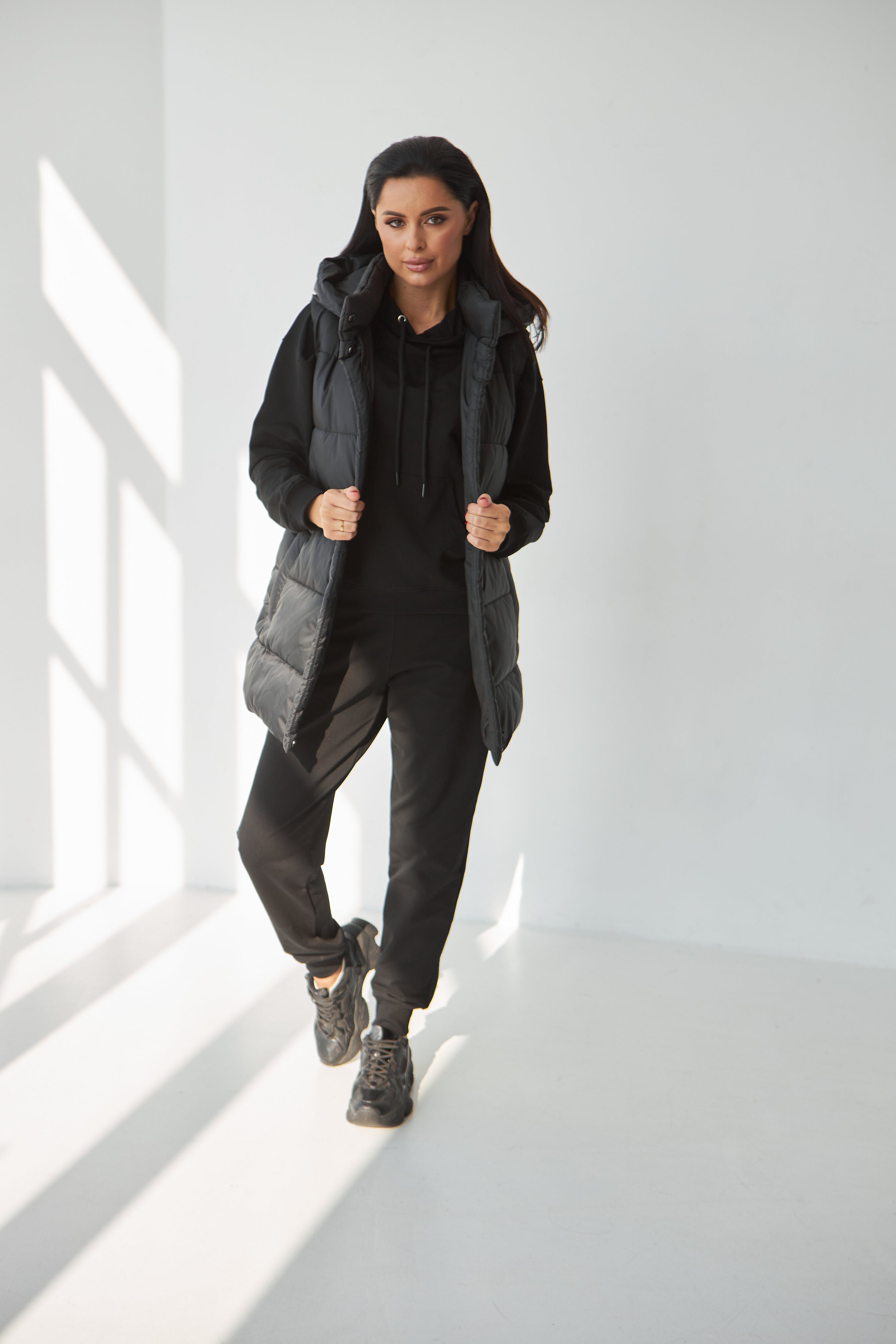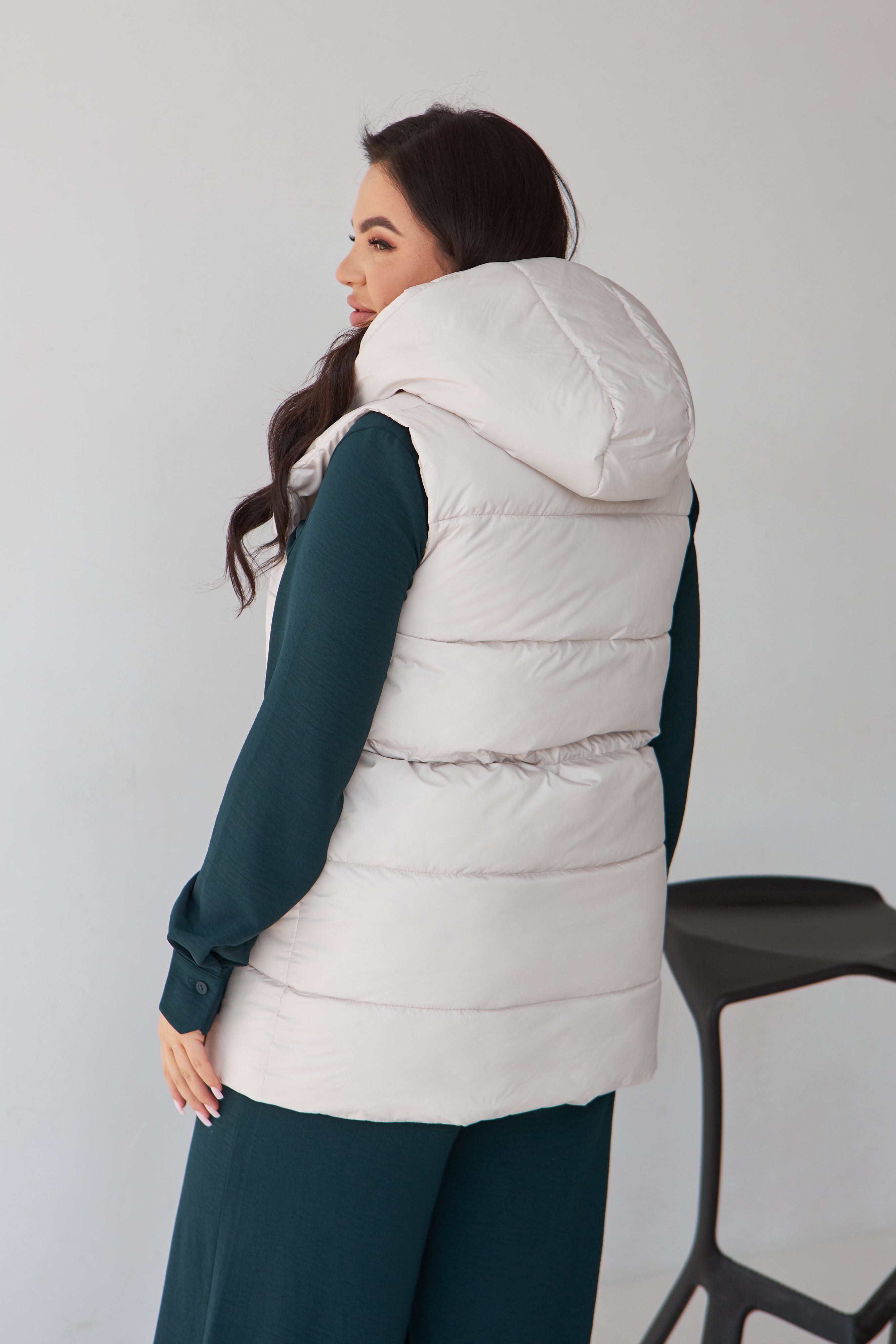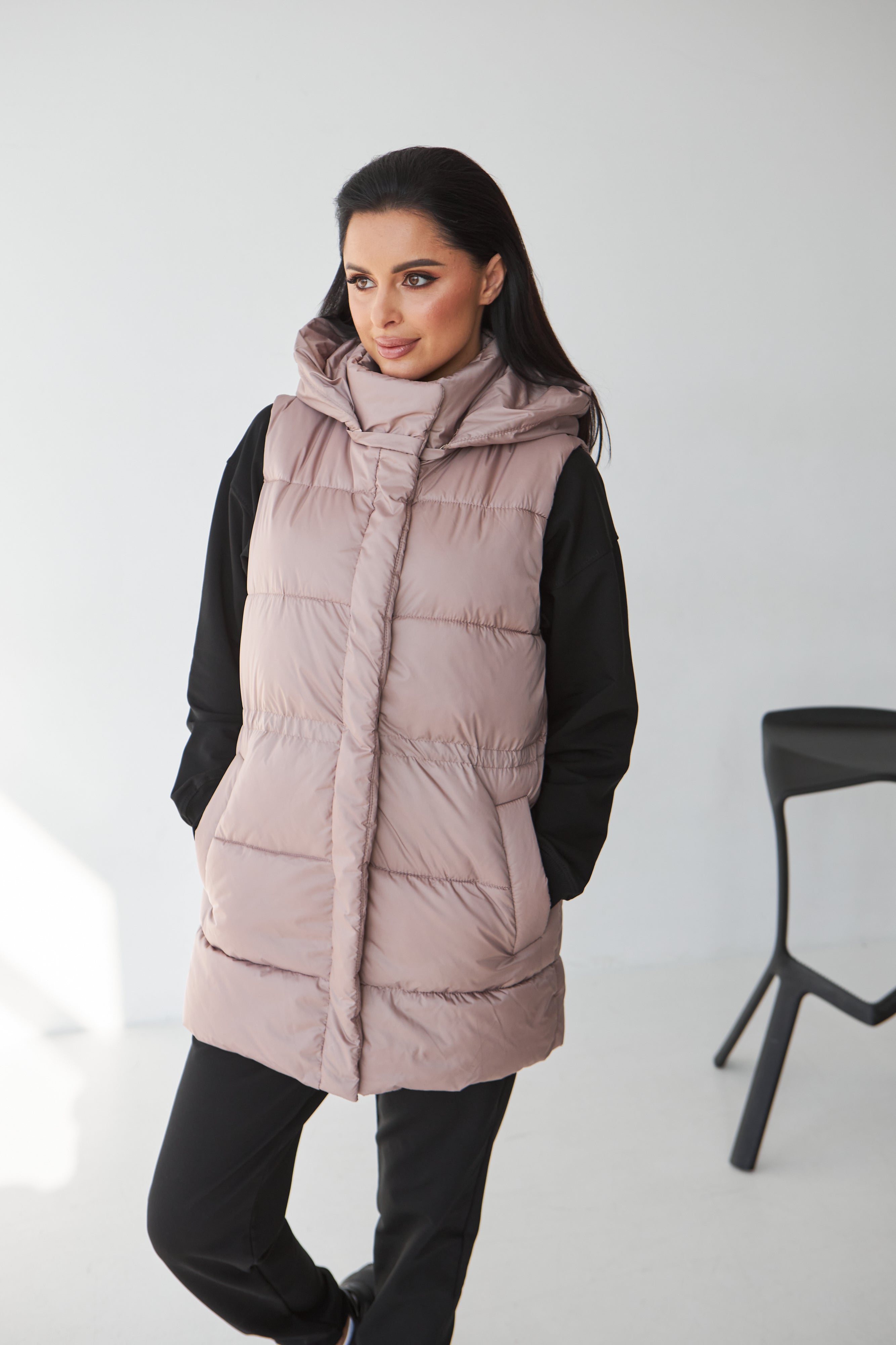 Жилет подовжений на кулісці з капюшоном і кишенями