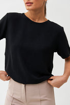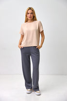 Легка та елегантна блуза-футболка з американського крепу стане універсальним елементом вашого гардероба. М'яка тканина з приємною текстурою чудово драпірується, не мнеться та забезпечує комфорт на весь день. Ідеальний вибір для стильних образів як у повсякденному житті, так і для офісу чи вечірніх виходів.