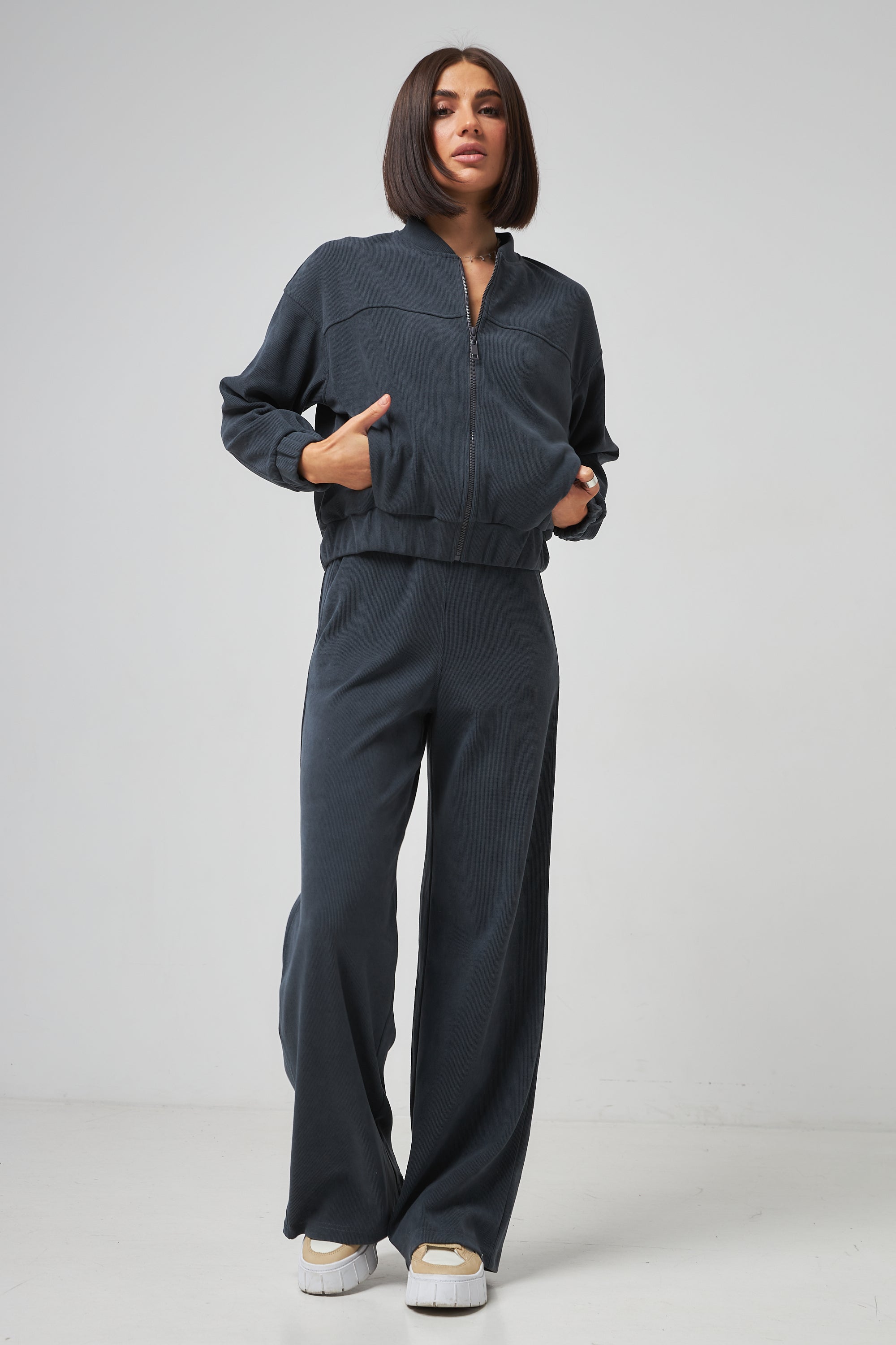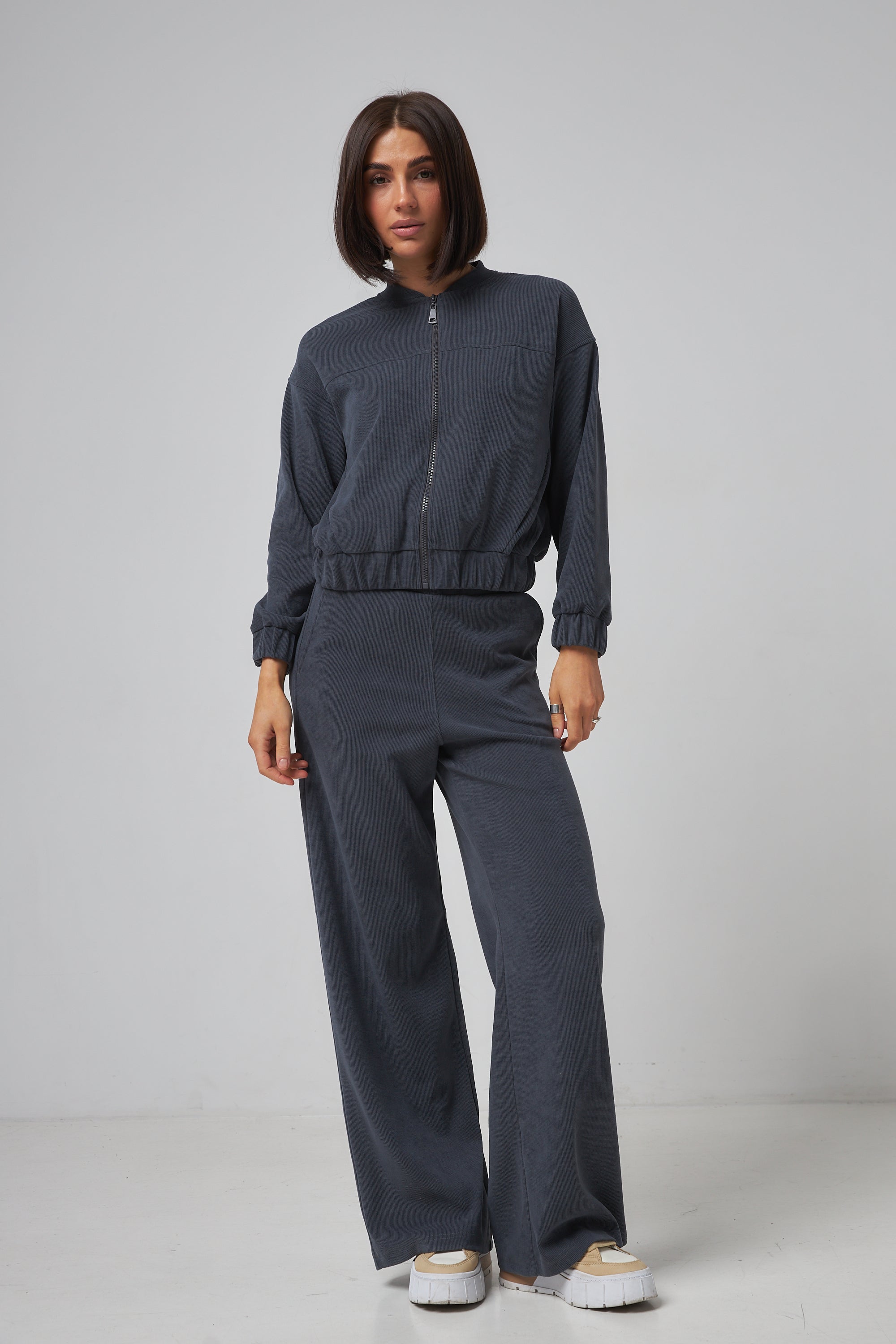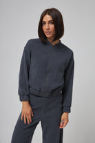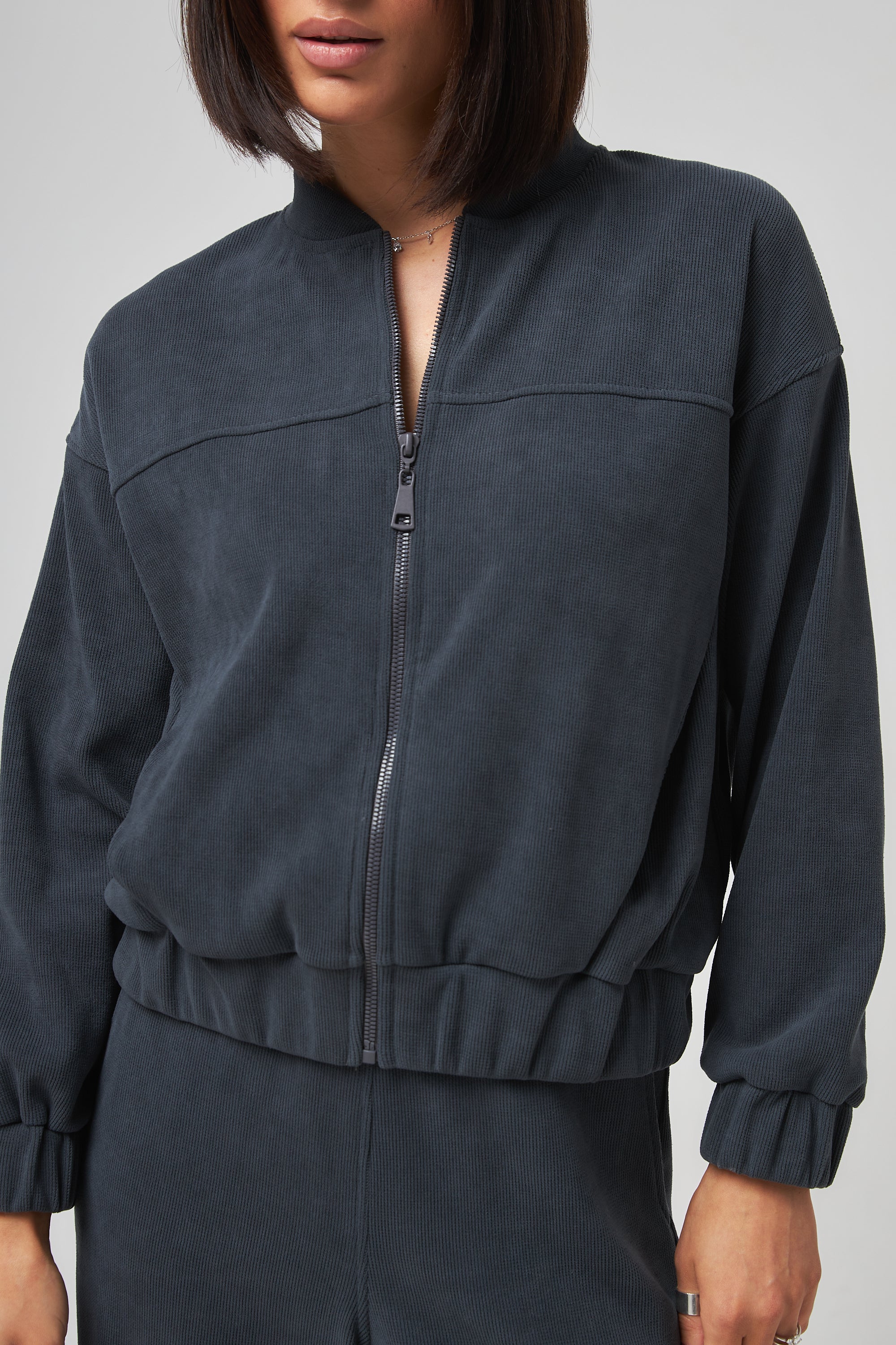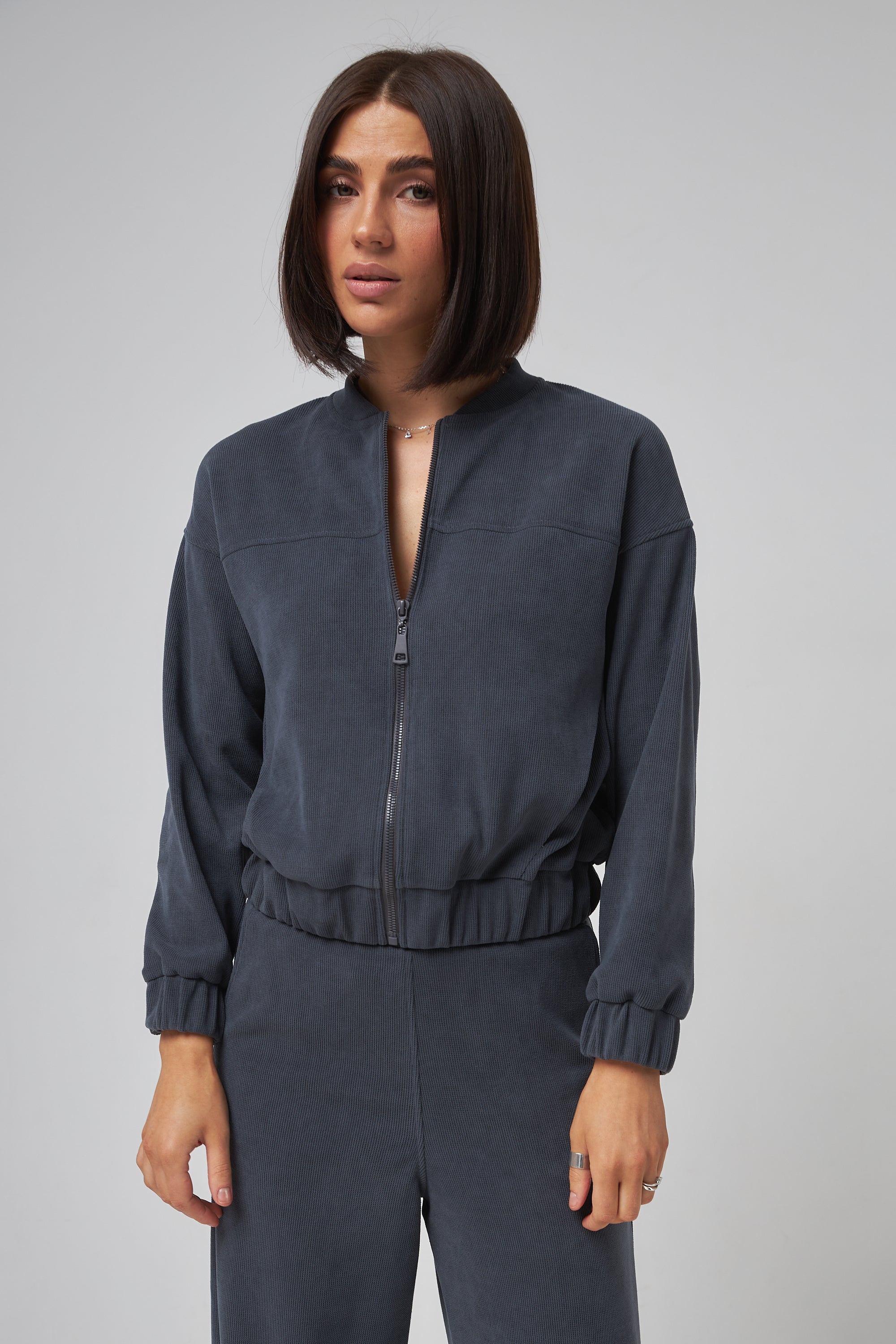 Стильний бомбер з м’якого фактурного трикотажу — ідеальний вибір для комфортного повсякденного образу. Модель виконана в лаконічному дизайні з округлим коміром-стійкою, зручною блискавкою спереду та еластичними манжетами. Завдяки стриманому кольору легко поєднується з джинсами, штанами або спідницями.