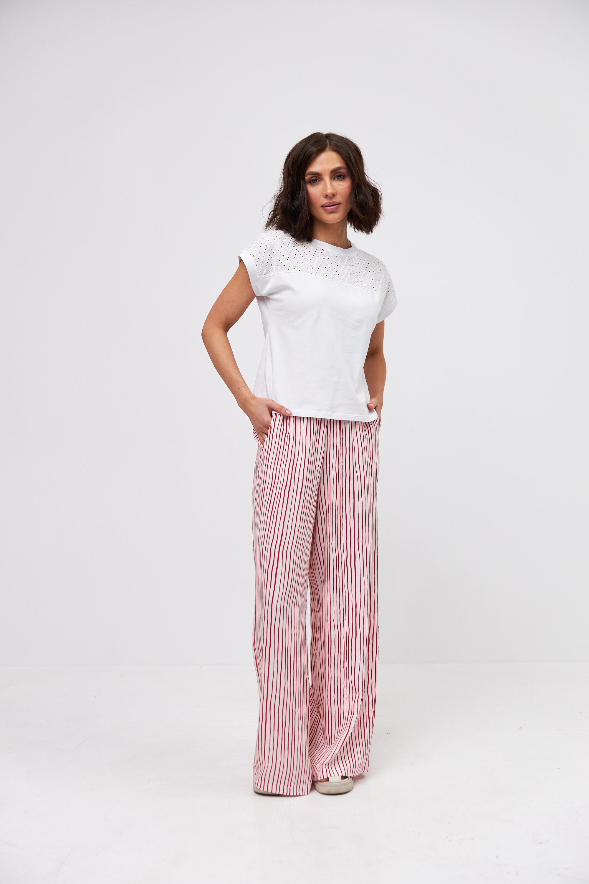 Дизайн: Завдяки своєму класичному прямому крою, ці брюки легко поєднуються з різноманітним верхом - від блузок до футболок, створюючи безліч стильних образів для різних ситуацій.