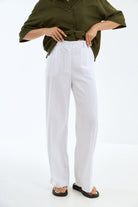 Ці лляні брюки — ідеальний вибір для теплої пори року. Натуральна тканина забезпечує відмінну повітропроникність і комфорт, дозволяючи шкірі дихати навіть у найспекотніші дні.