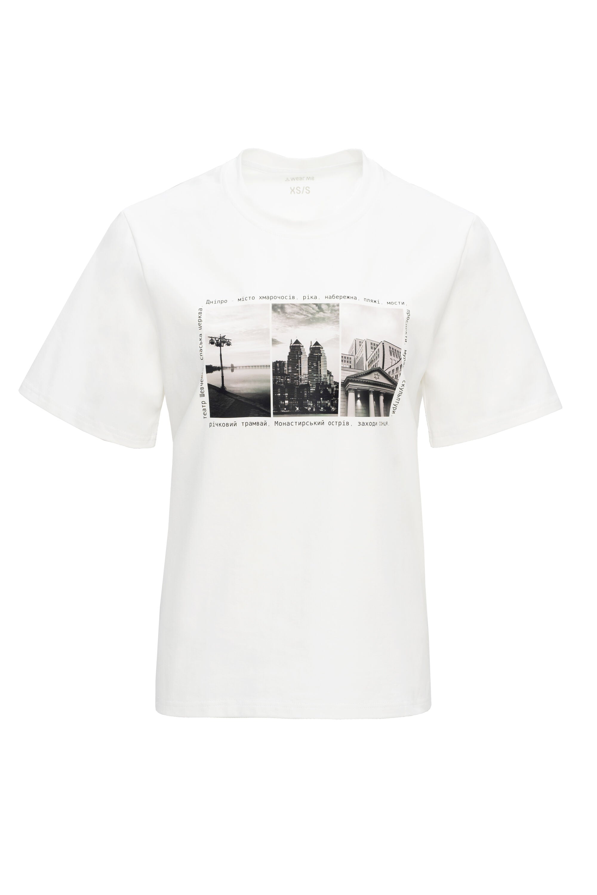 Футболка "Вдома" Дніпро — жіноча футболка з фотопринтом, 95% бавовна, 5% еластан, oversize посадка