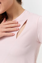 Жіноча рожева футболка з куліру з оригінальним асиметричним розрізом.