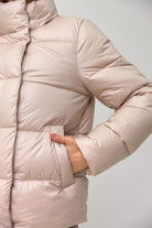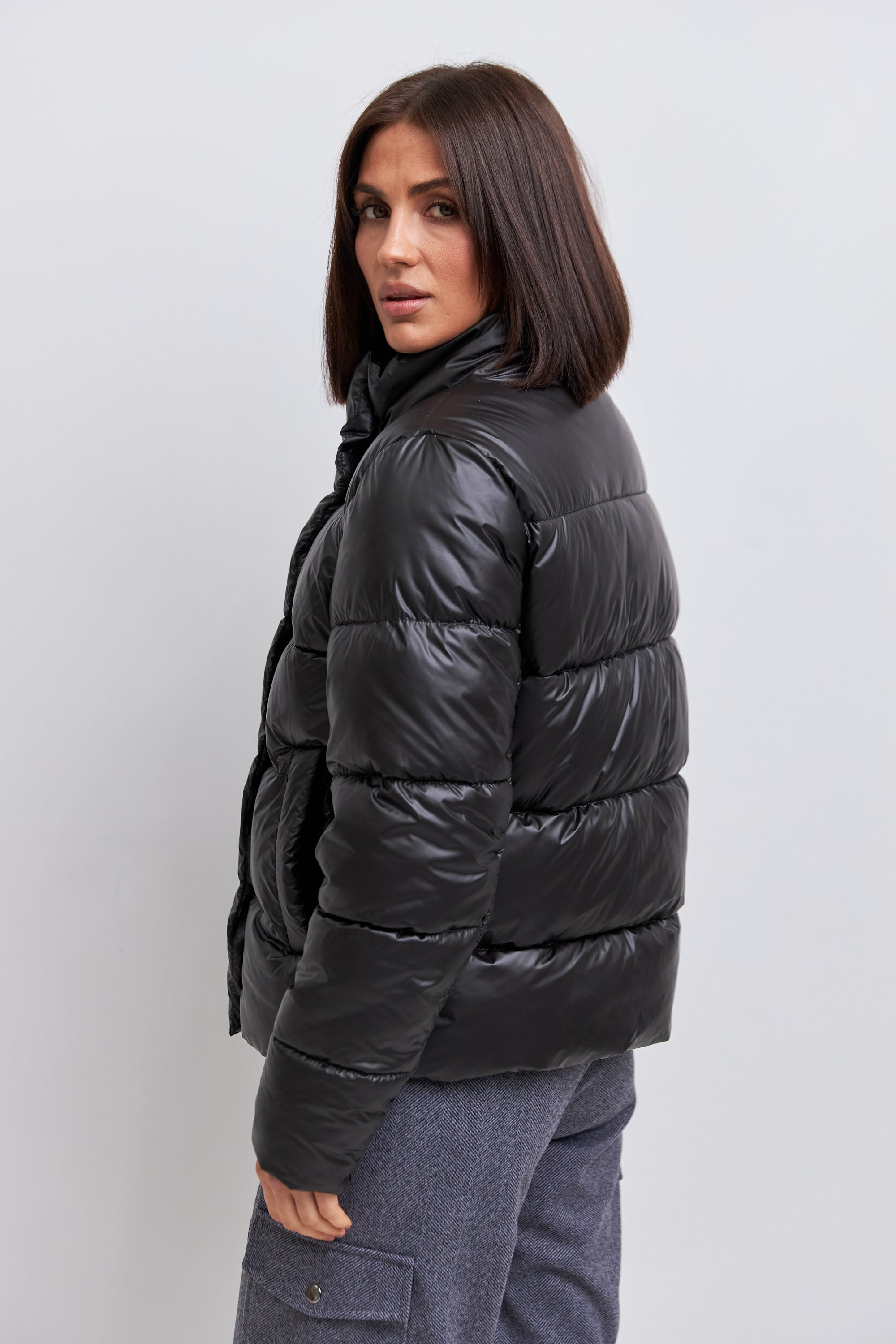 Сучасна, зручна та стильна куртка, яка поєднує комфорт і мінімалізм. Модель виконана з блискучої водовідштовхувальної тканини, що надає образу сучасного шарму. Стійка на кнопках ефективно захищає від вітру, а прихована застібка на блискавку та кнопки створює акуратний, лаконічний вигляд.