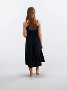 Сукня має зручну довжину міді та легку ярусну спідницю, що забезпечує свободу рухів. Наявність кишень додає практичності. Ця сукня стане чудовим вибором як для повсякденних образів, так і для особливих випадків – просто додайте відповідні аксесуари та взуття.