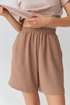 Комфортні шорти на еластичному поясі — ідеальний вибір для літнього сезону. Модель виконана з легкої, дихаючої тканини, яка приємно відчувається на тілі. Вільний крій не обмежує рухів, а універсальний дизайн дозволяє легко поєднувати з будь-яким верхом. Підходять для повсякденного носіння, прогулянок або відпочинку.