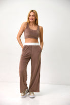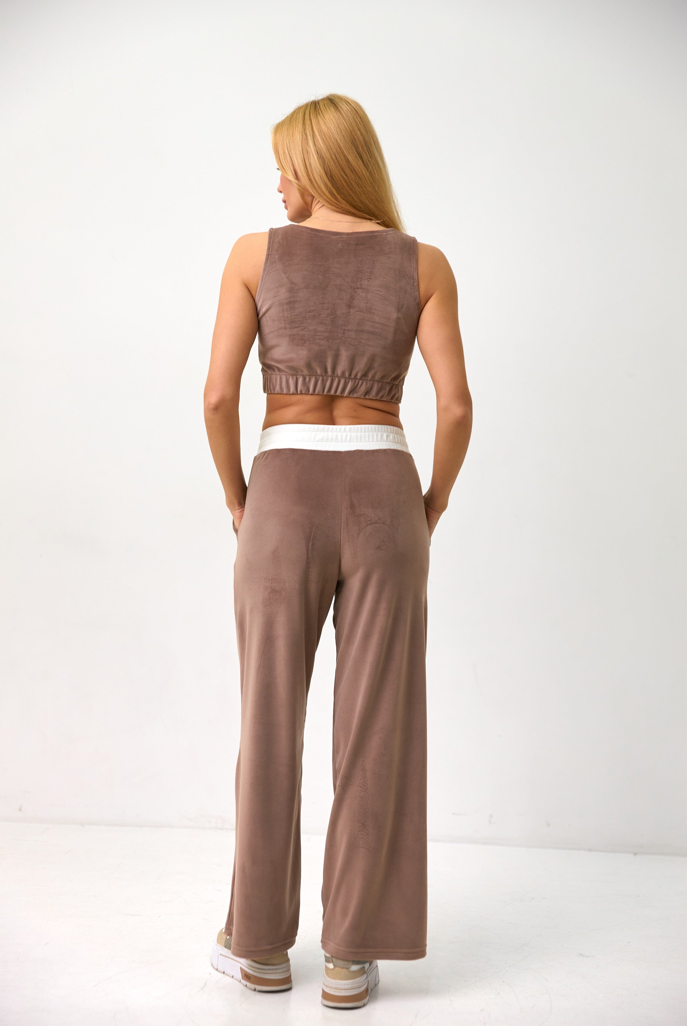 Штани з велюру з білим поясом — м’якість, що закохує з першого дотику