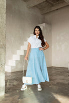 Максі-спідниця напівкльош із розрізом — витонченість у кожному русі