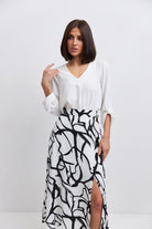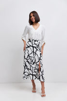 Актуальні принти додають образу виразності, а розріз збоку надає жіночності та елегантності.