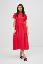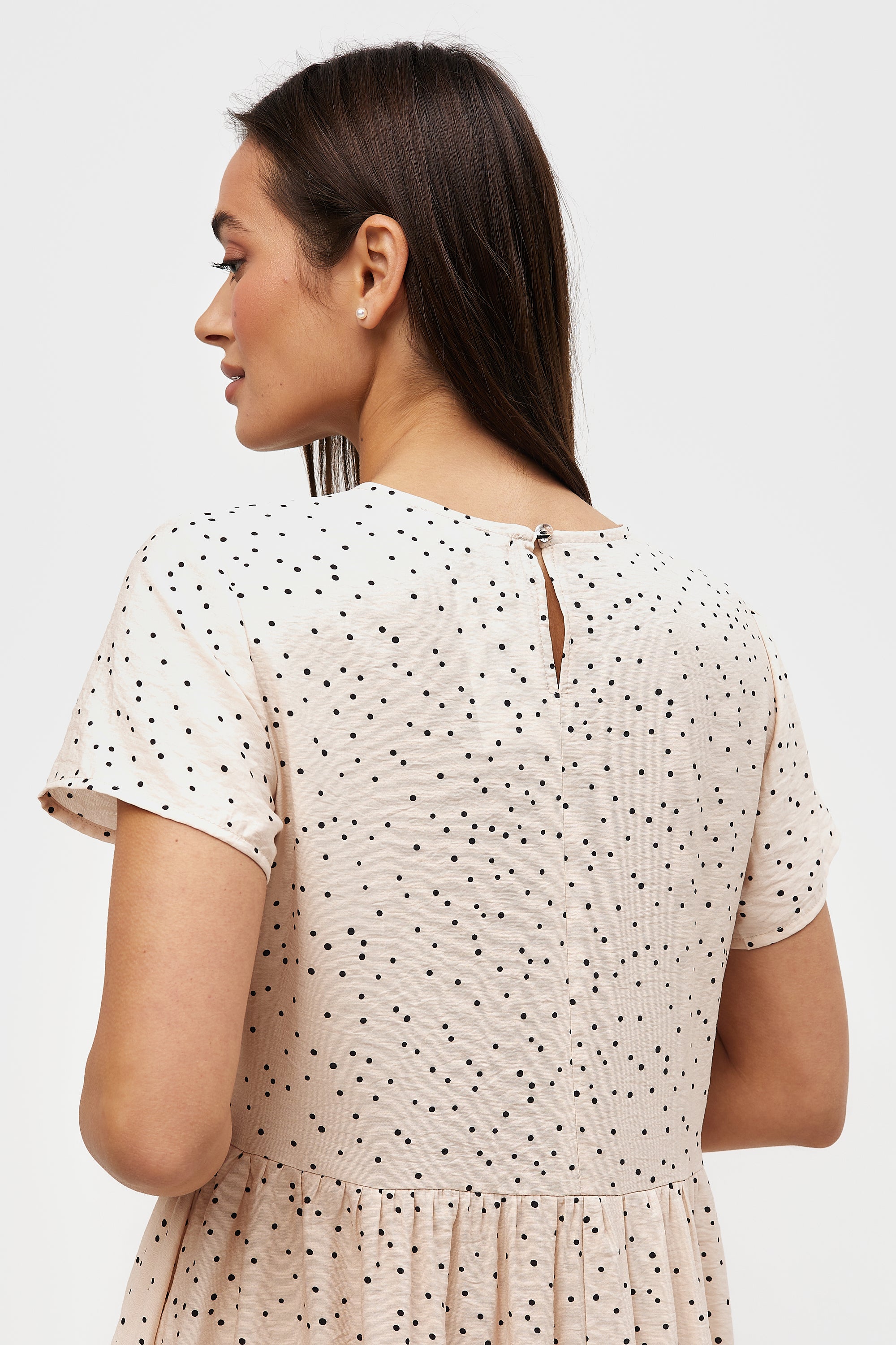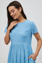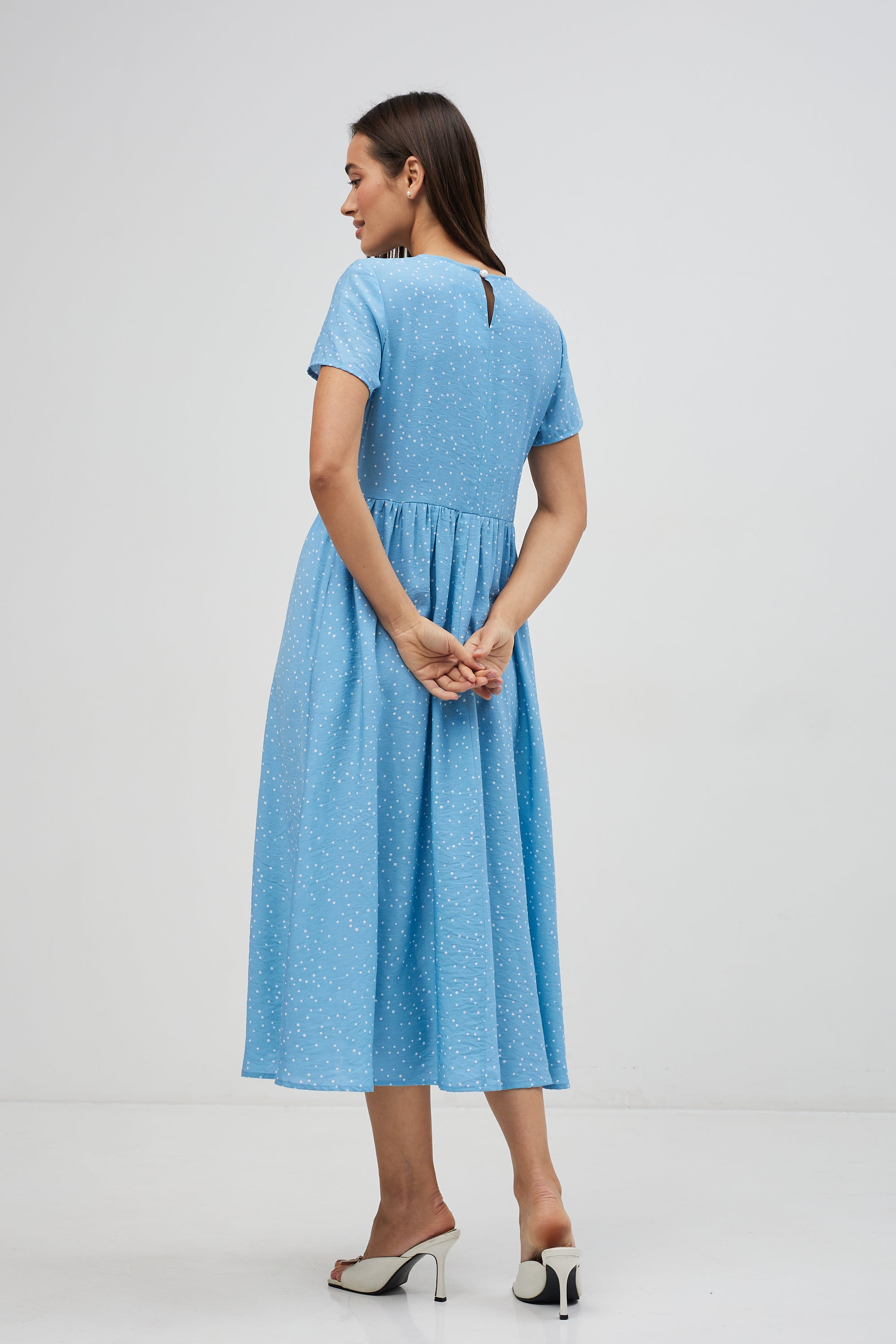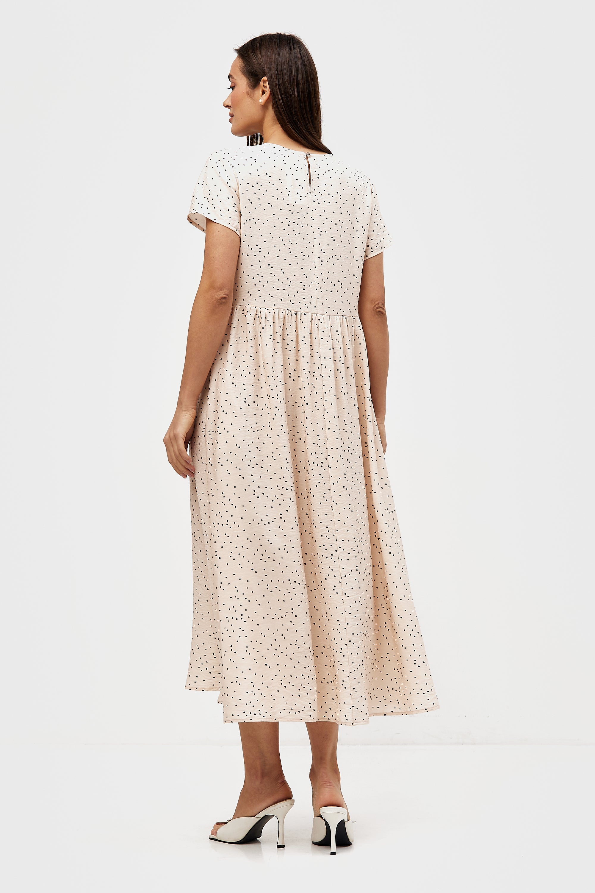 Особливості: короткий рукав, округла горловина та акуратний шов під грудьми створюють простий, але дуже жіночний силует. Вільна спідниця дарує свободу та легкість у кожному кроці.