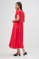Сукня вільного крою довжини максі — чудовий вибір для тих, хто цінує комфорт і стиль. Виготовлена з легкої жатки, що має приємну текстуру та не потребує прасування — ідеальна тканина для щоденного носіння чи подорожей.
