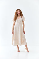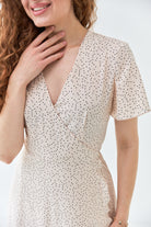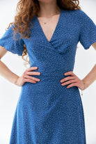 Фасон на запах підкреслює талію та створює спокусливий V-подібний виріз, а розкльошені рукави-колокол додають образу легкості та динаміки. Ідеальний варіант для побачень, святкових подій або просто, щоб відчути себе особливою.