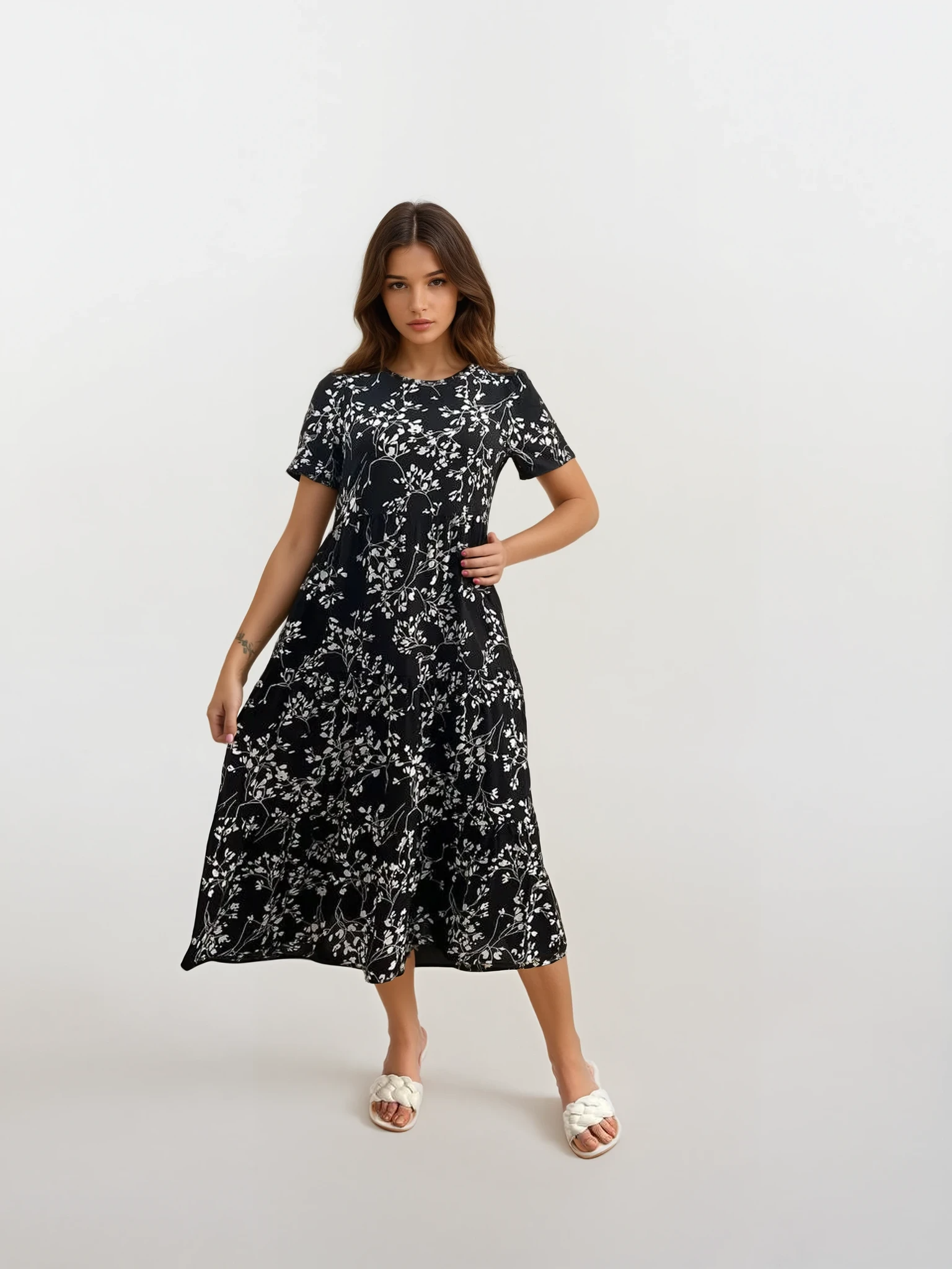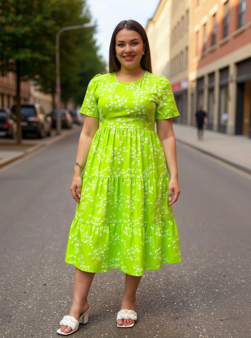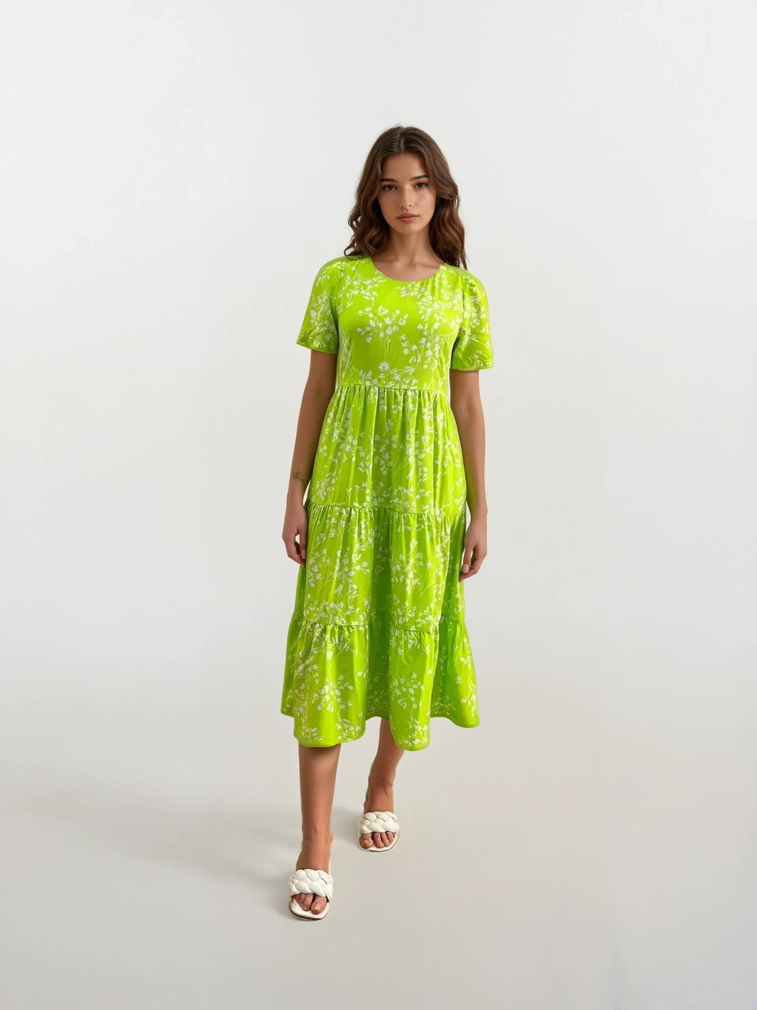 Сукня триярусна з коротким рукавом зі штапелю Романтична та легка — ця триярусна сукня зі штапелю створена для вашого літнього гардероба. Матеріал: штапель — легка, м’яка до тіла тканина з натуральних волокон, що забезпечує комфорт навіть у найспекотніші дні. Посадка: вільна, не сковує рухів, ідеально підходить для щоденного носіння. Особливості: Короткий рукав, що додає легкості образу. Три яруси, які створюють об’єм і гарну динаміку в русі. Круглий виріз горловини — зручний та універсальний. Дизайн: Лаконічний і жіночний силует. Однотонна модель, яка легко поєднується з аксесуарами будь-якого стилю. Чудово виглядає як із кедами, так і з босоніжками. Ця сукня — ідеальний вибір для прогулянок, відпустки чи романтичного вечора.
