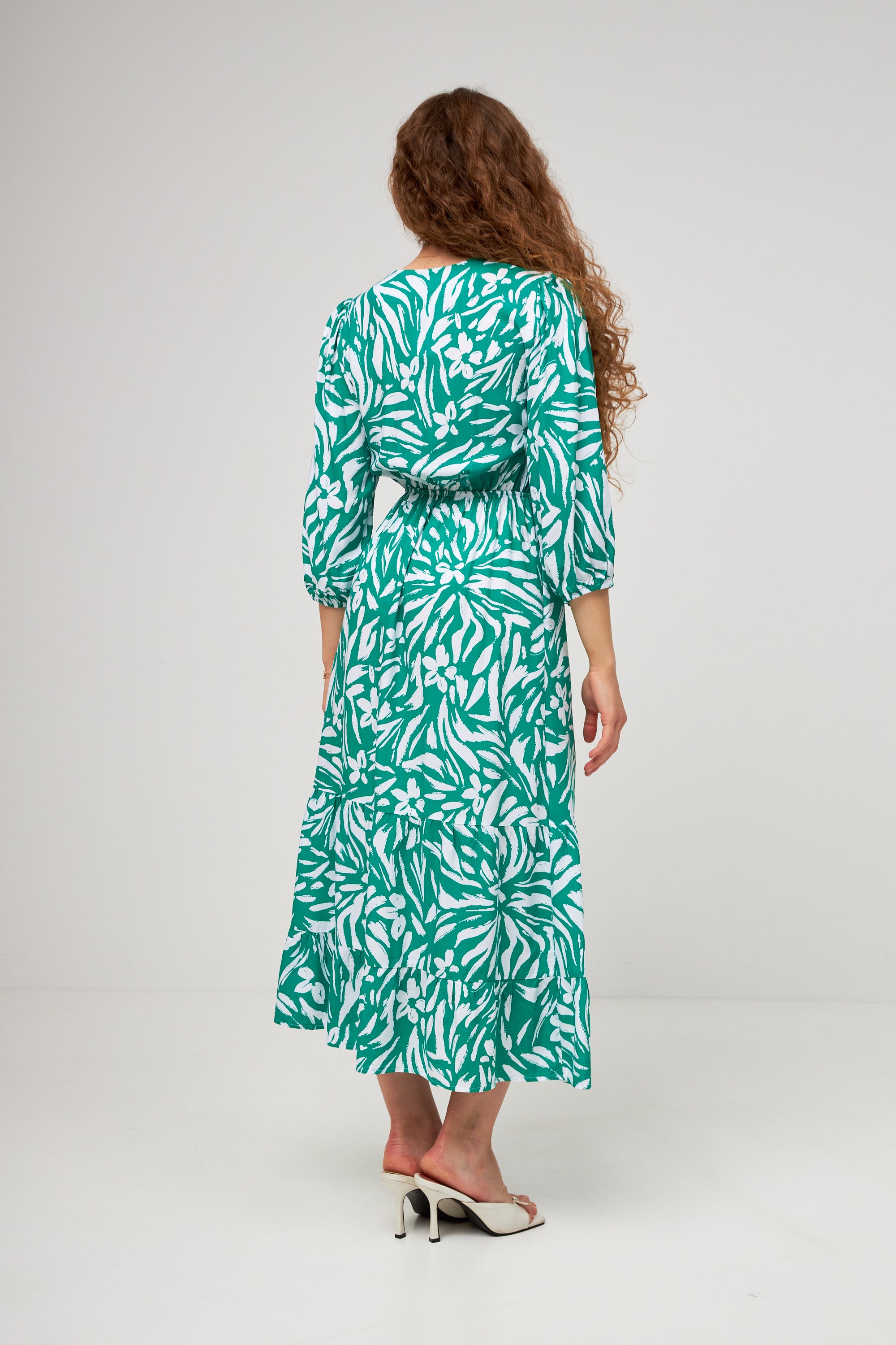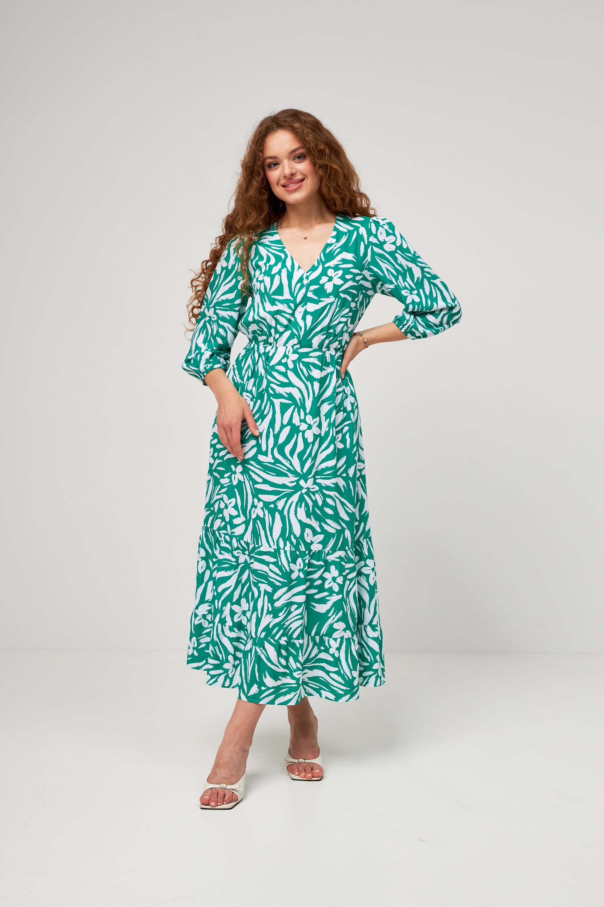 Ця чарівна триярусна сукня, виконана з легкого штапелю, — ідеальний вибір для створення ніжних та жіночних літніх образів. Вона поєднує в собі комфорт, легкість і елегантний дизайн, що пасує для повсякденного носіння та особливих моментів.