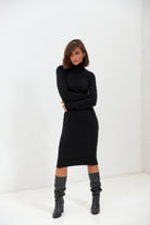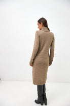 Ніжна та затишна в’язана сукня з горлом стане вашим улюбленим вибором для прохолодної пори року. М’яка текстура приємна до тіла, а високий комір-горло захищає від холодного вітру, даруючи комфорт і тепло.