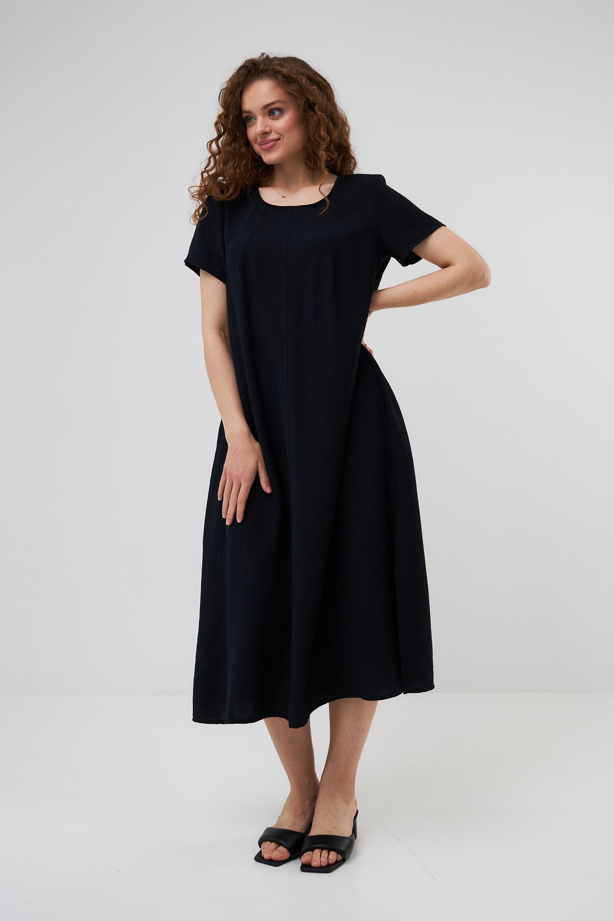 Легка та комфортна сукня міді, виконана з натурального льону-жатки. Ця унікальна фактура тканини не лише надає сукні стильного та невимушеного вигляду, але й забезпечує додаткову повітропроникність та стійкість до зминання, що робить її ідеальною для літнього сезону.