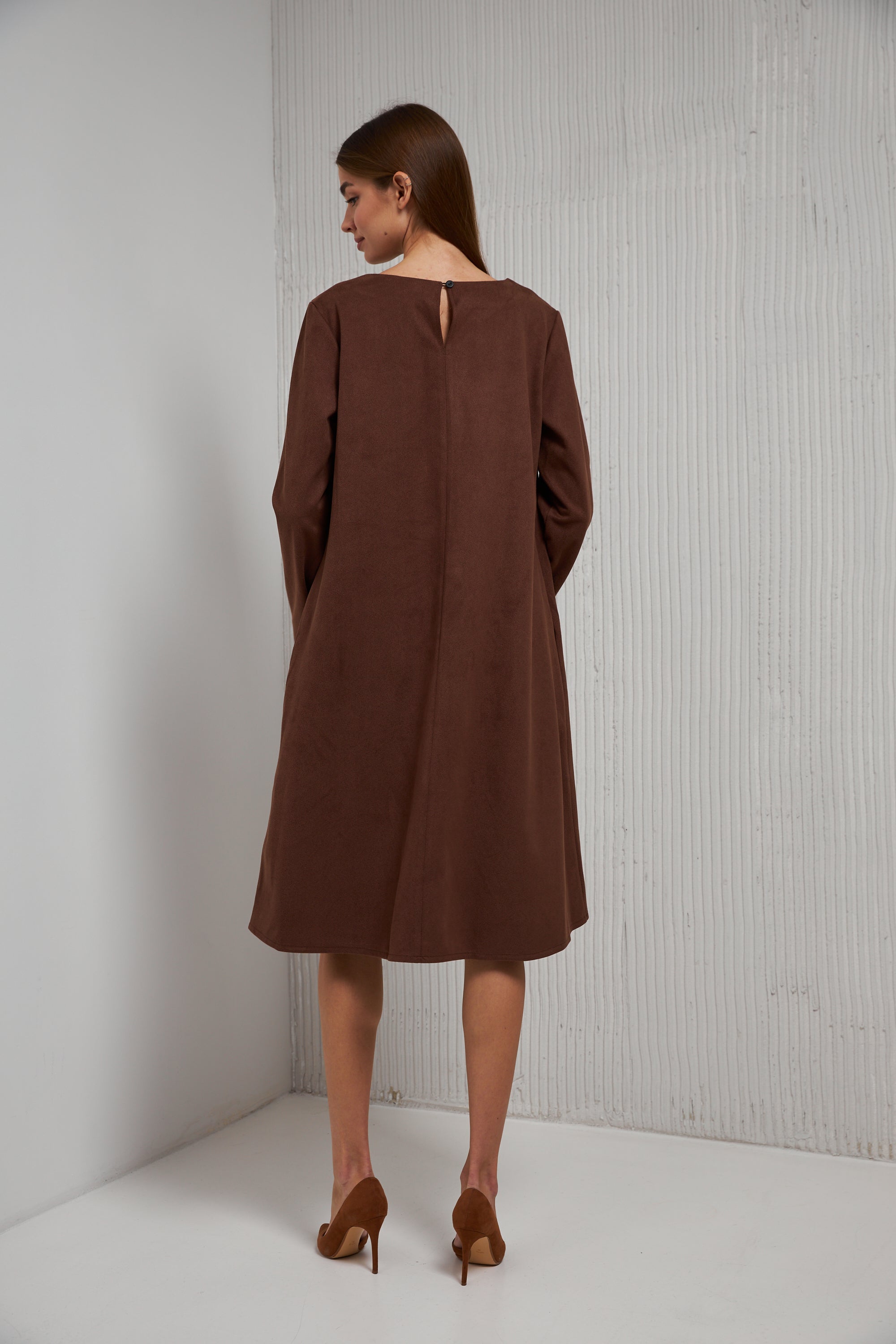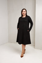Сукня вільна з декоративними швами з довгим рукавом