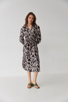 Ця стильна та зручна сукня поєднує елегантність і комфорт, завдяки використанню легкого штапелю, що ідеально підходить для теплих сезонів.