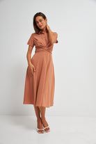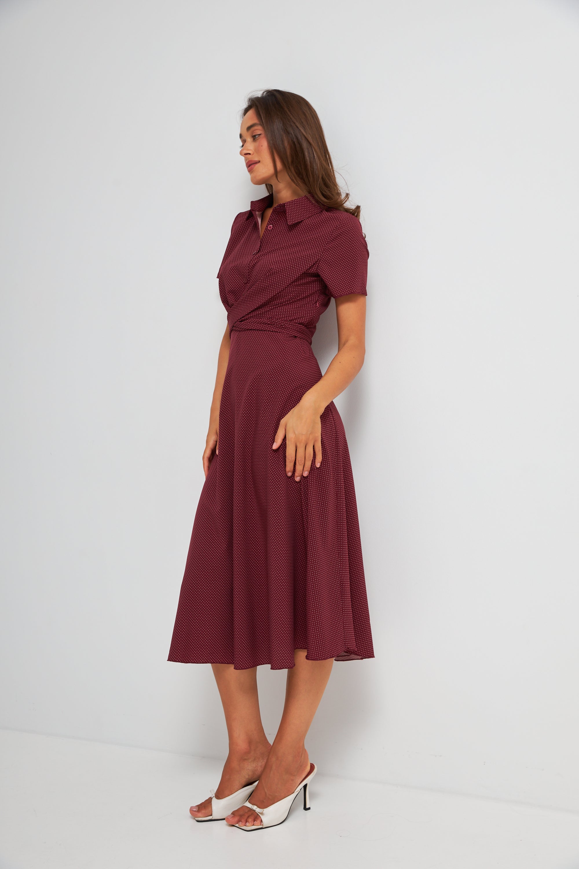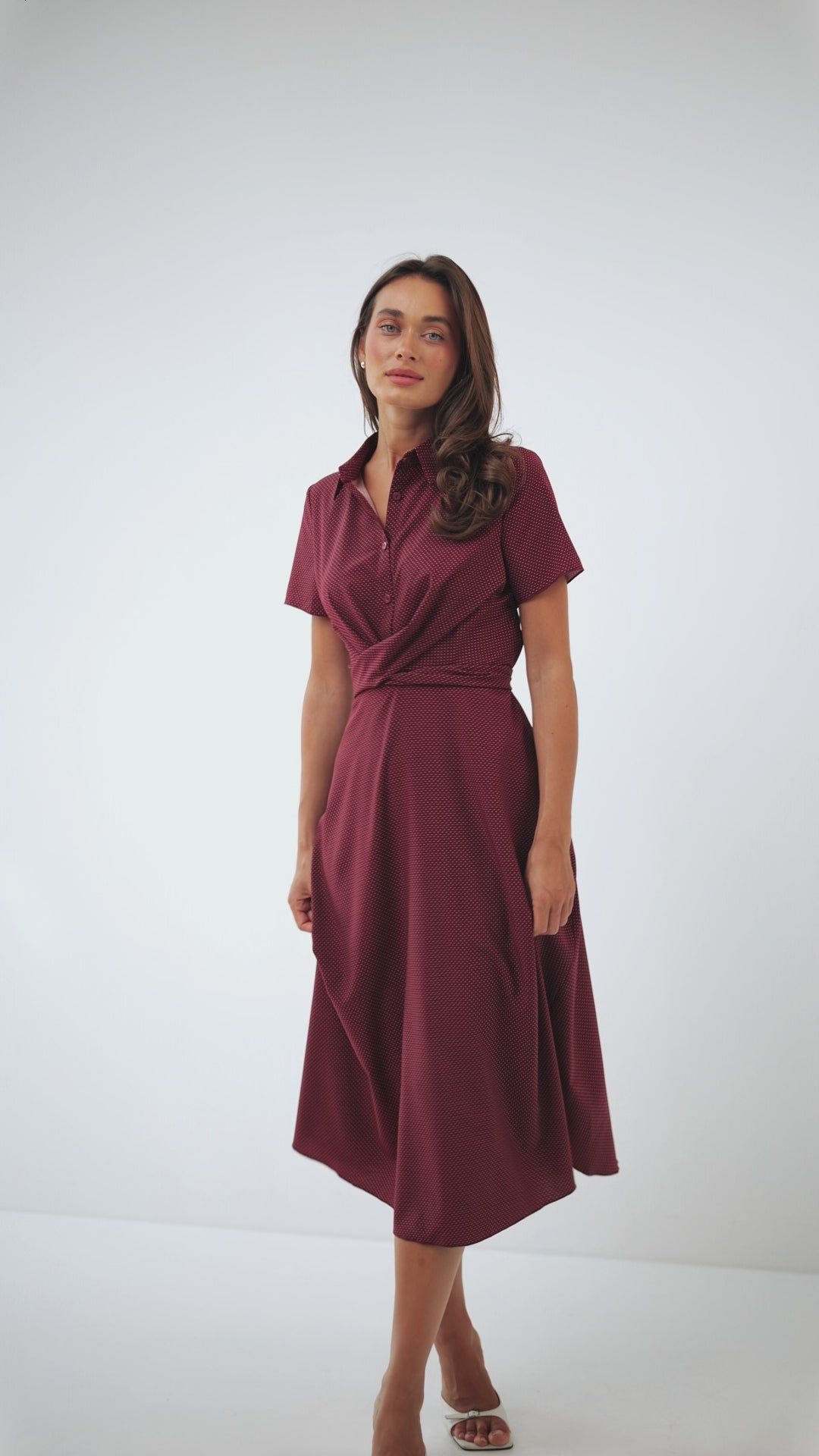 Ця сукня — стильне поєднання елегантності та комфорту. Особливий акцент — декоративний перекрут у зоні талії або грудей, який візуально формує ідеальний силует, додаючи виразності фігурі. Короткий рукав створює відчуття легкості, роблячи сукню доречною як для повсякденних образів, так і для особливих подій.