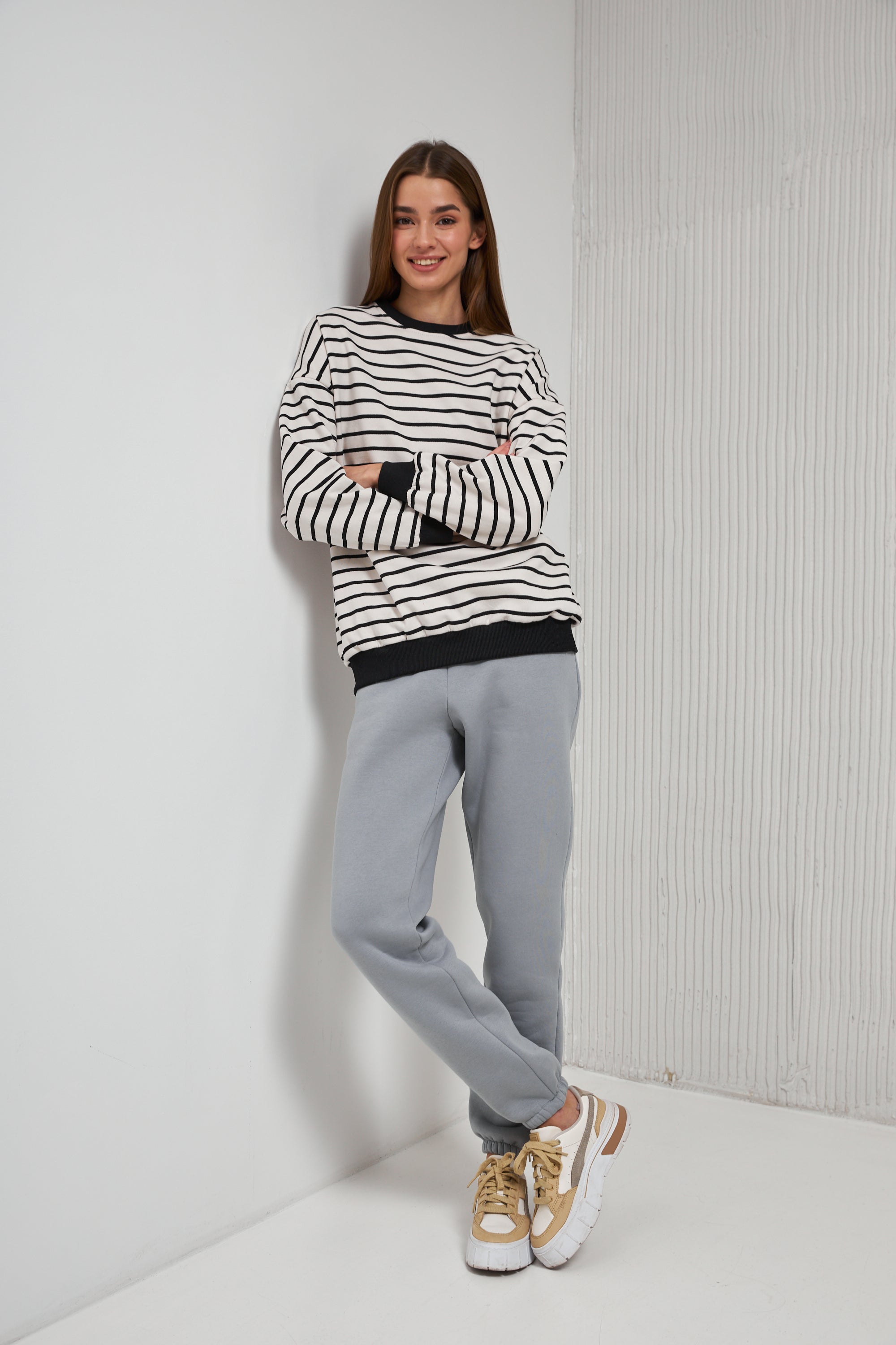 Світшот смужка з чорним манжетом