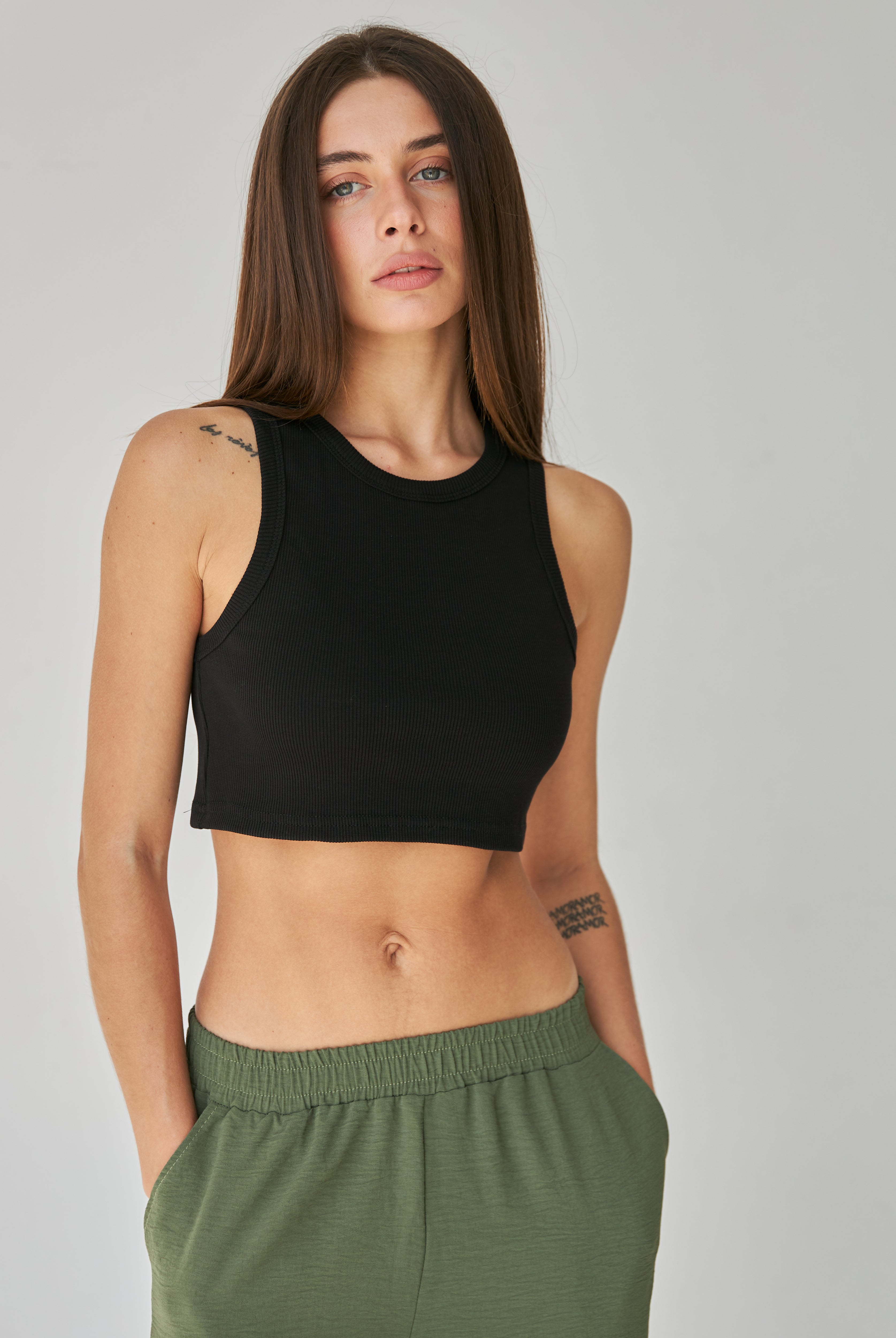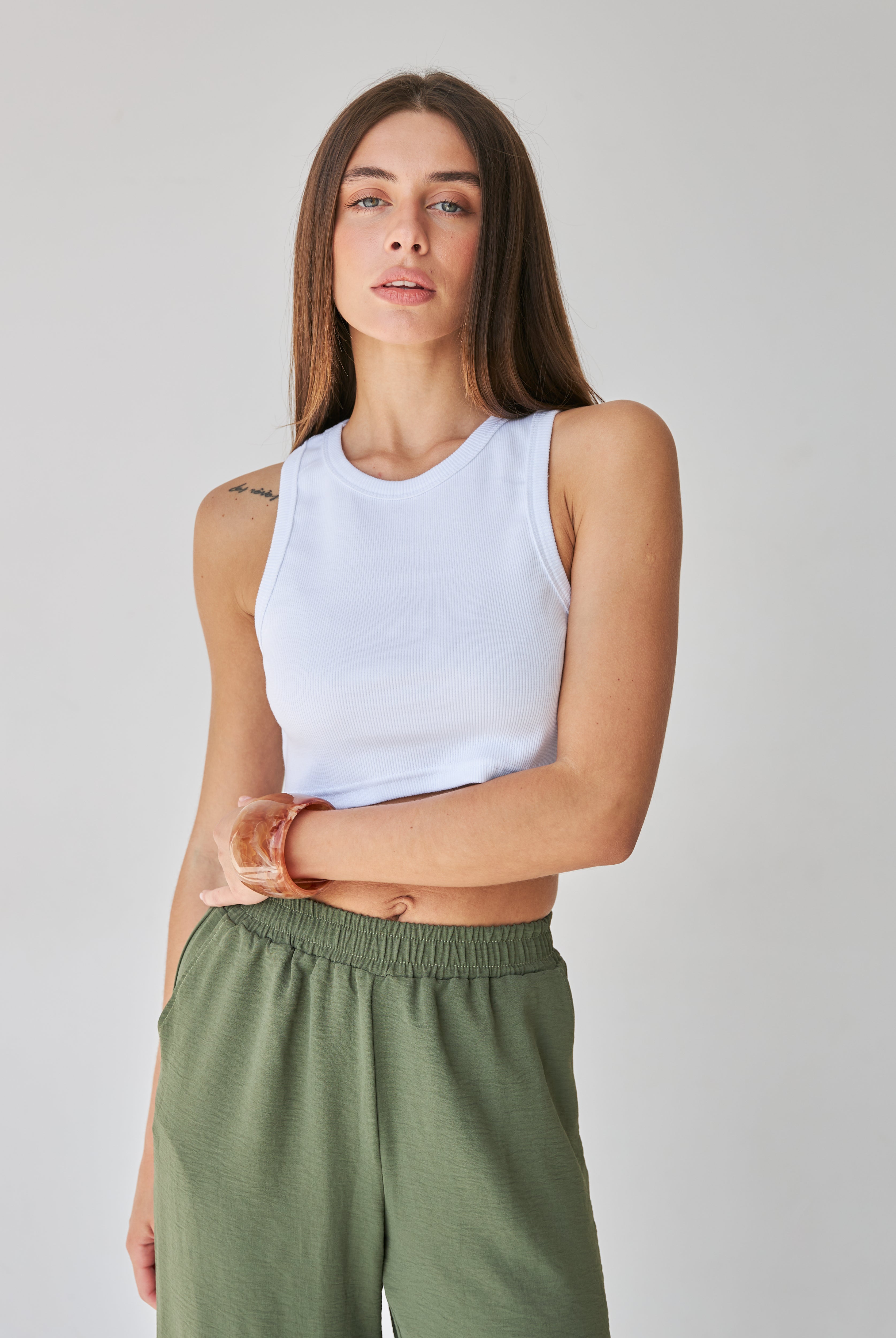 Матеріал має легкий, благородний блиск, який додає образу вишуканості. Це дозволяє створювати як спортивні, так і більш ошатні луки.