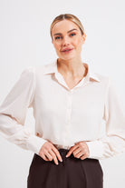 Ніжна блуза-сорочка — втілення витонченої елегантності з акцентом на деталі. Головною особливістю моделі є широкі манжети, які візуально подовжують руки.