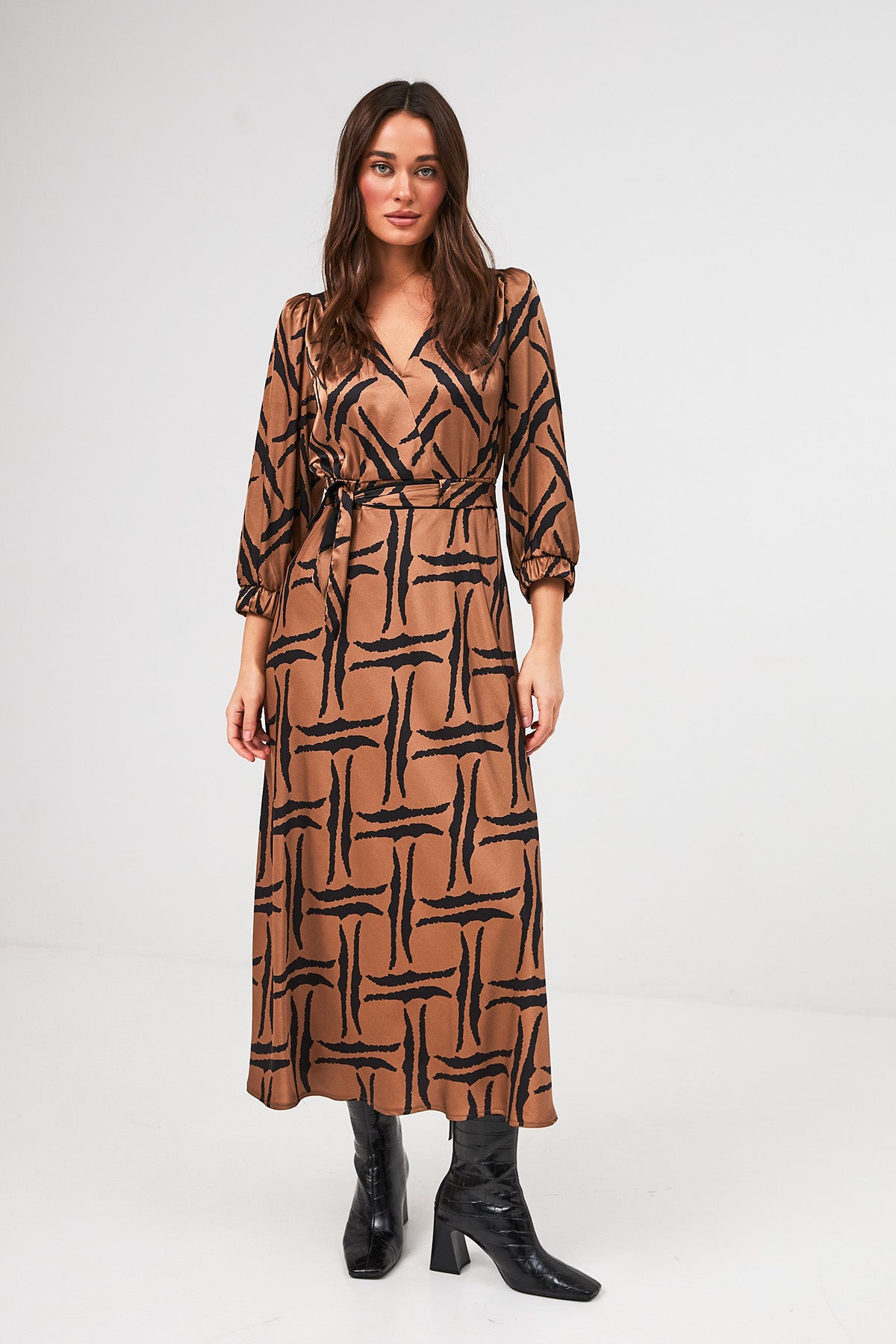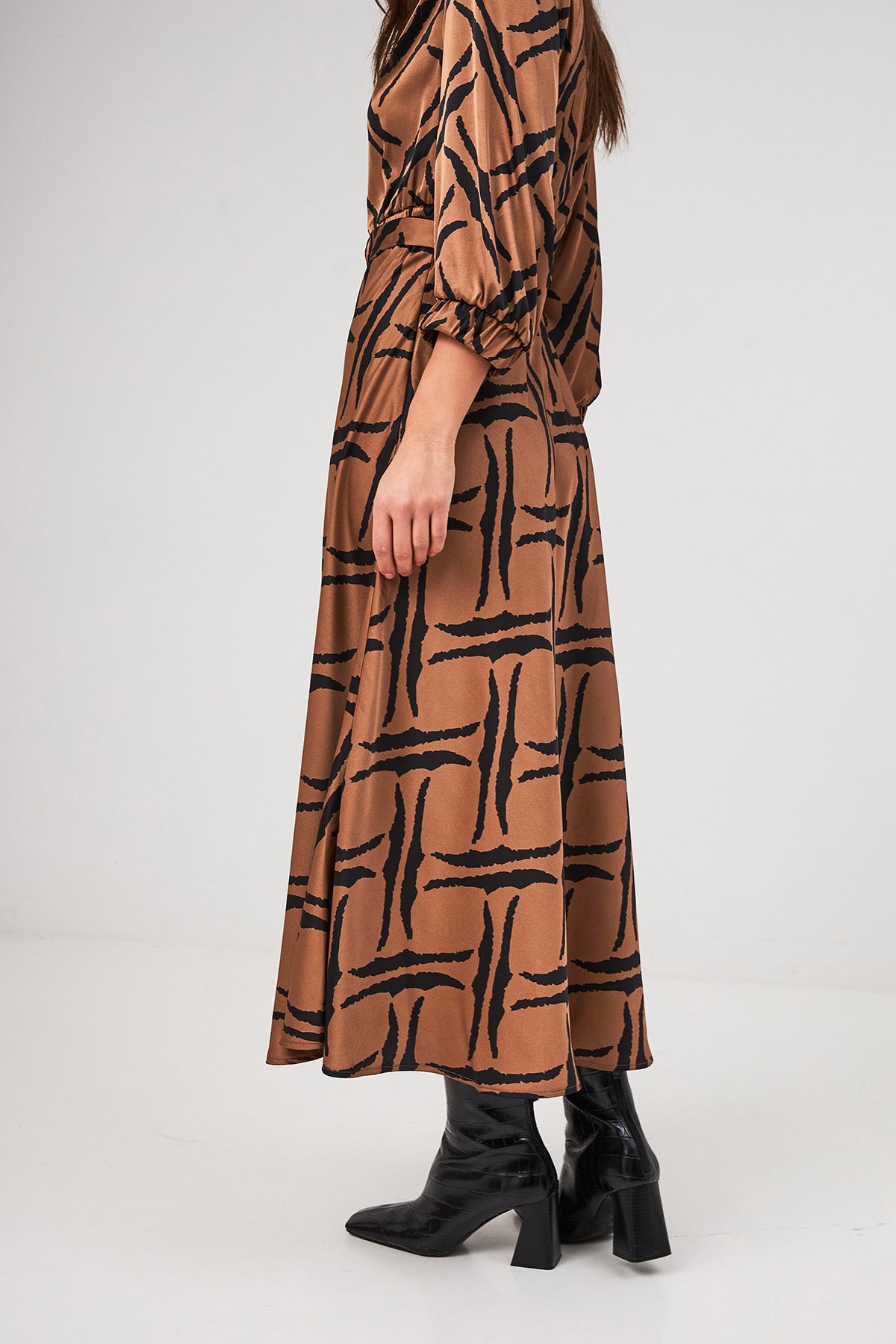 Сукня міді шовкова з анімалістичним принтом та контрастним поясом