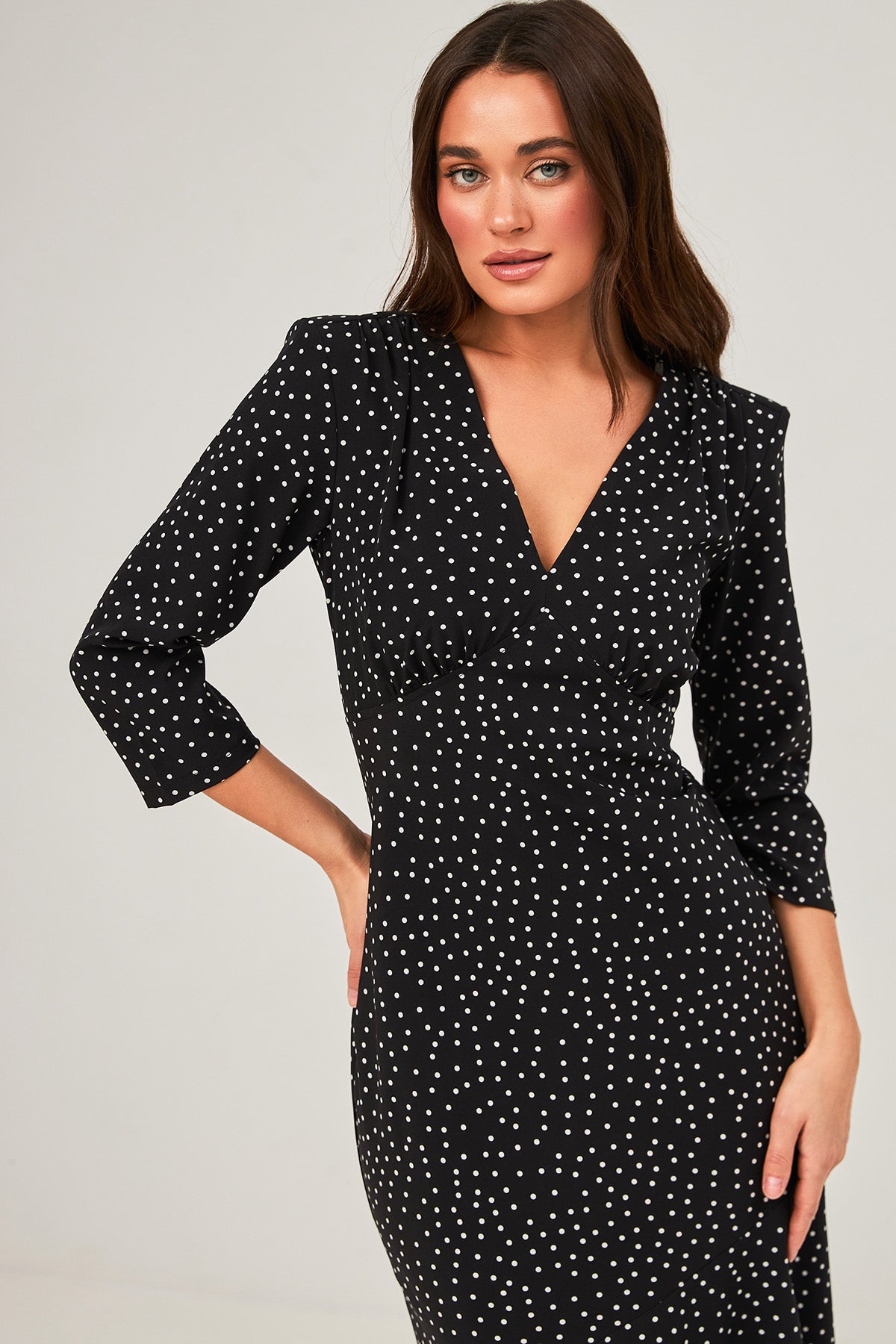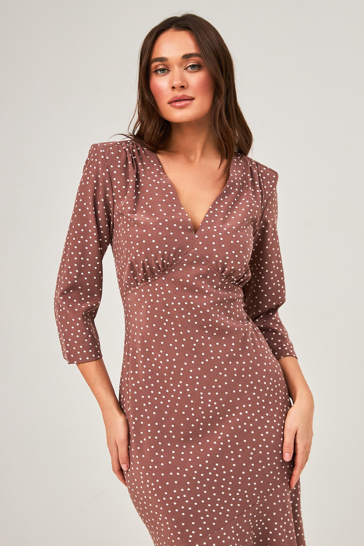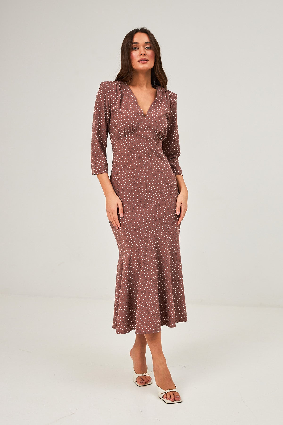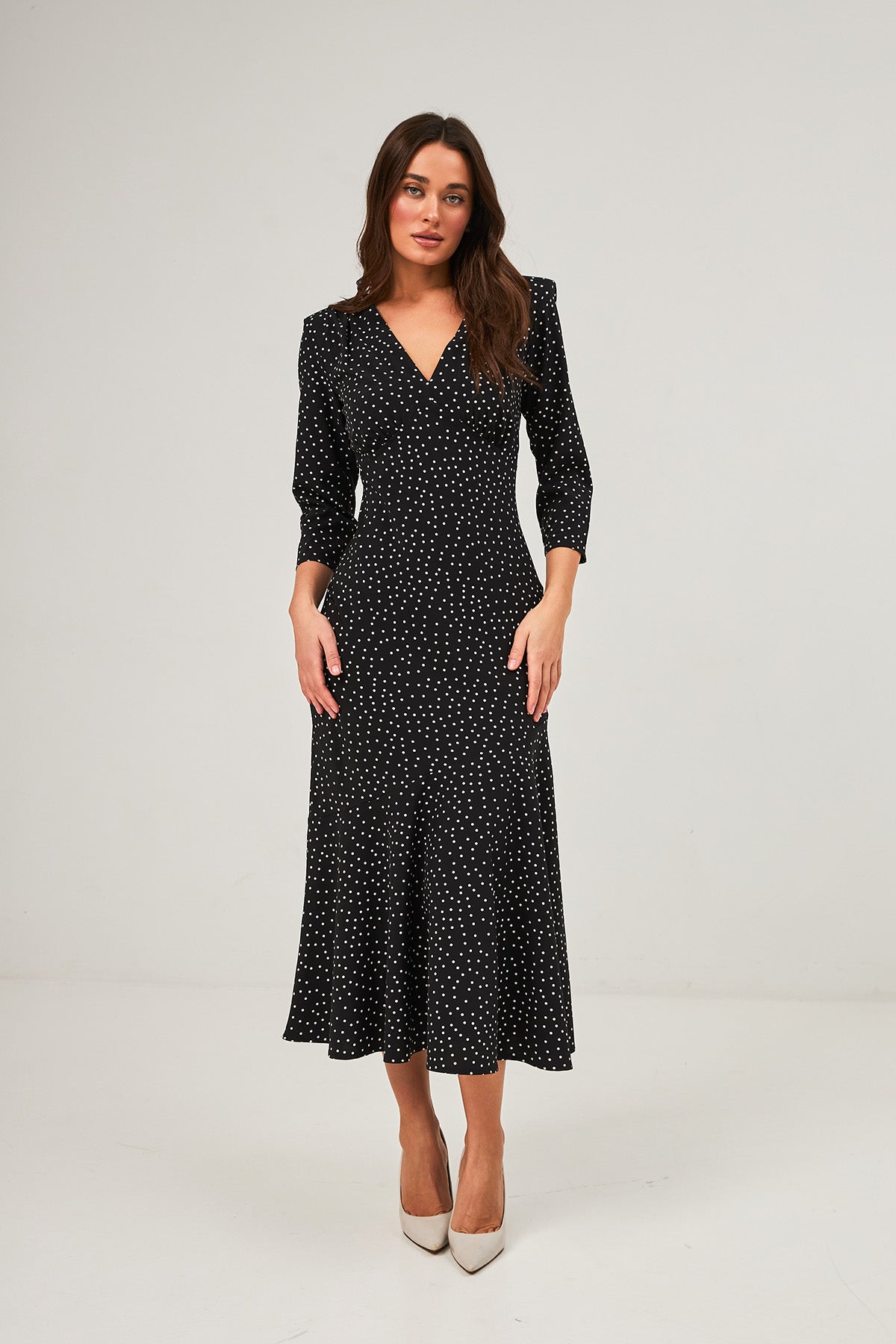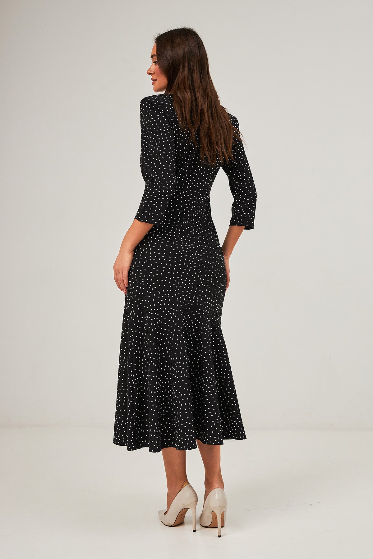 Сукня мідаксі напівприлеглого силуету, виготовлена з легкого та приємного на дотик матеріалу, стане перлиною вашого гардероба. Кожна деталь крою продумана так, щоб підкреслити фігуру, зберігаючи при цьому загадковість та витонченість.