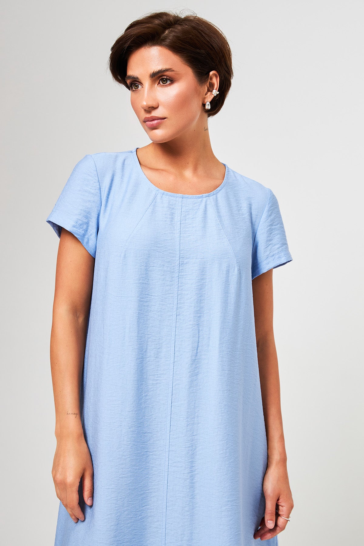 Круглий виріз горловини та вільні короткі рукави підкреслюють мінімалістичний стиль, який ніколи не виходить із моди.