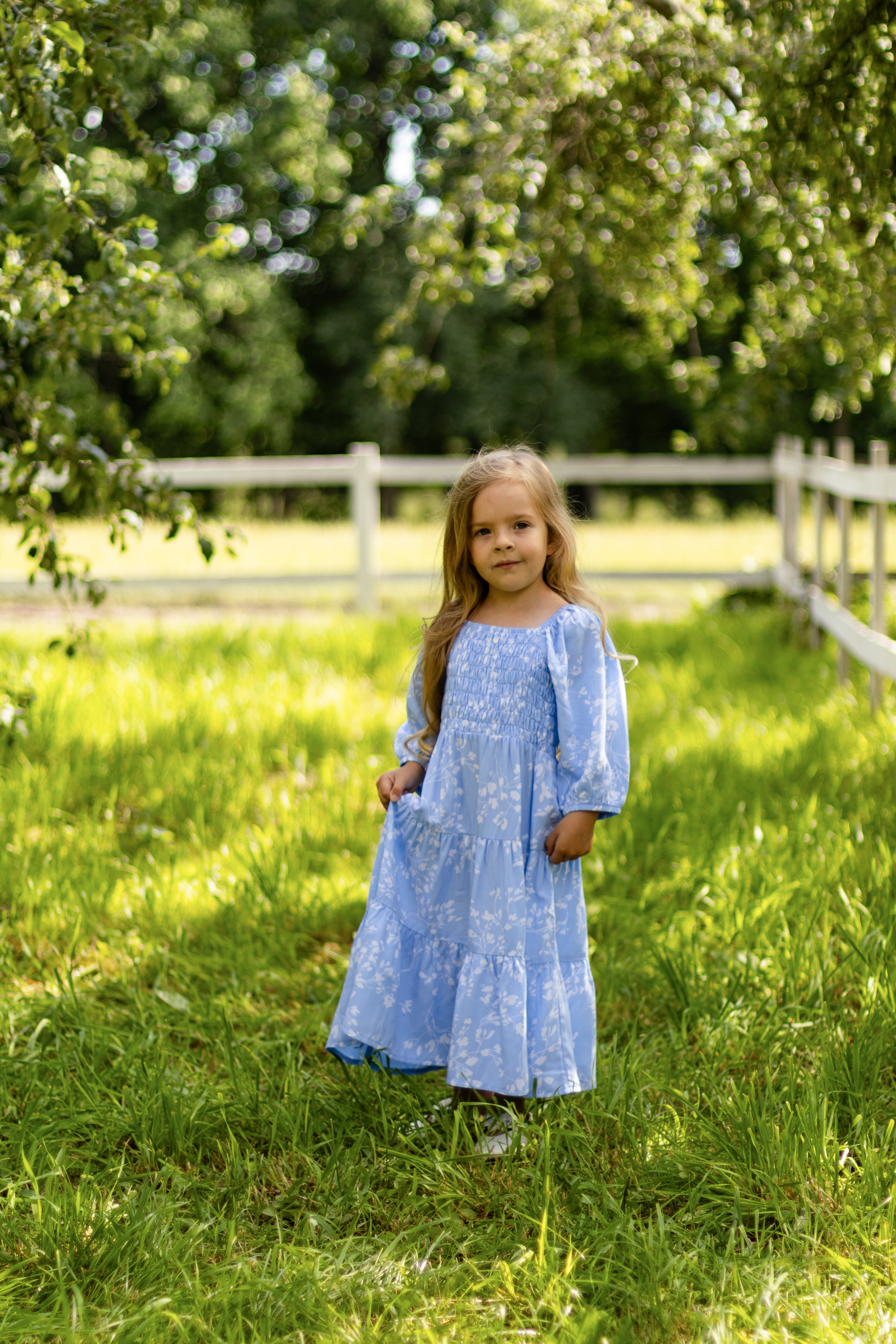 Ця сукня створена спеціально для малечі — легка, зручна та натуральна. Виготовлена з м’якого штапелю — дихаючої тканини рослинного походження, яка приємна до тіла, не парить і чудово підходить для теплої пори року. Штапель має легку текстуру, не викликає подразнень і забезпечує свободу рухів, що особливо важливо для активних діток.