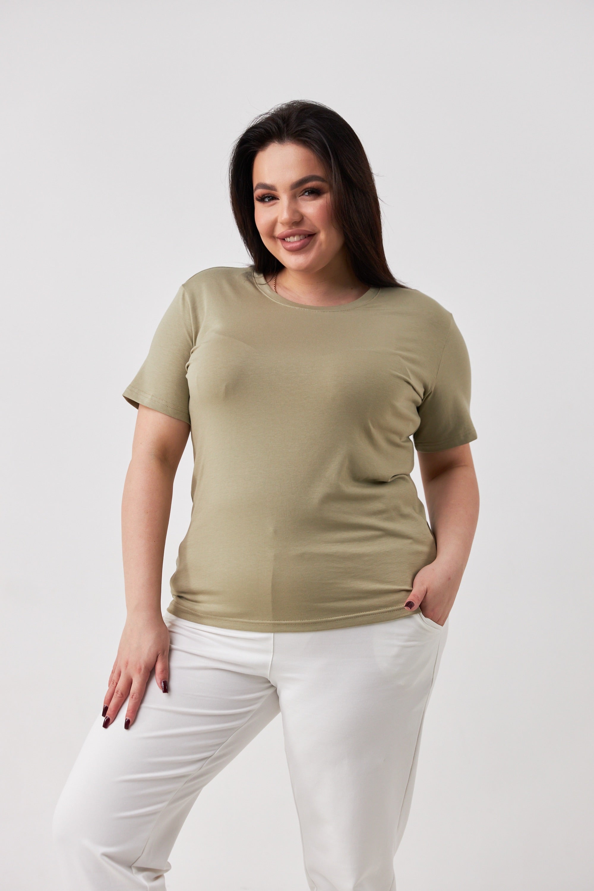 Базова жіноча футболка з куліру — м’якого та дихаючого бавовняного трикотажу.