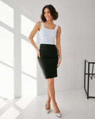 Лаконічний та стильний топ, виготовлений із еластичного джинсу бенгаліна, стане базовим елементом вашого гардеробу. Завдяки щільній, але м’якій тканині, топ прекрасно сідає по фігурі, підкреслюючи силует та забезпечуючи комфорт протягом усього дня.