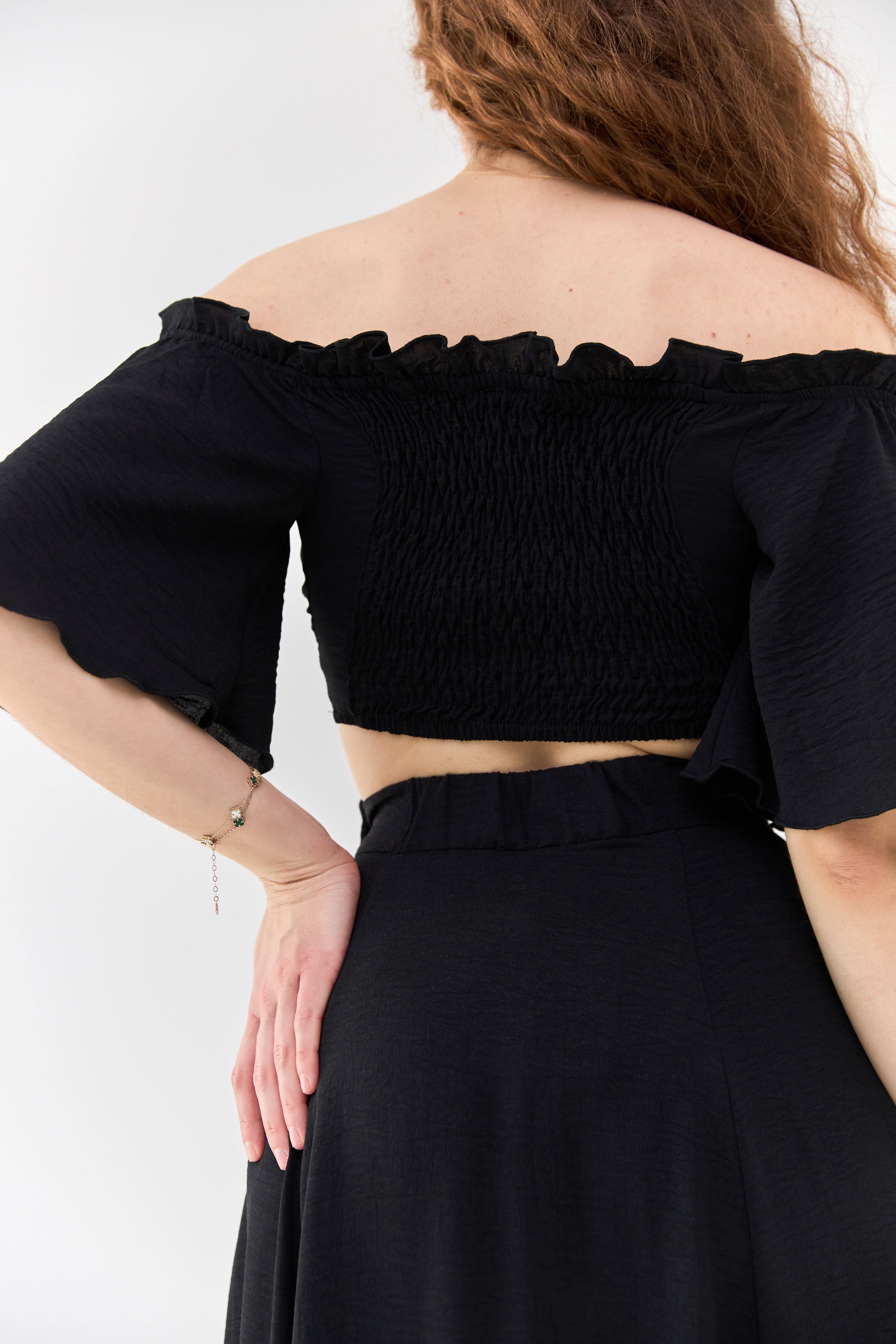 Жіночий топ з американського крепу — це поєднання комфорту, витонченості та універсальності. Легка фактурна тканина приємна до тіла, м'яко лягає по фігурі та не сковує рухів.
