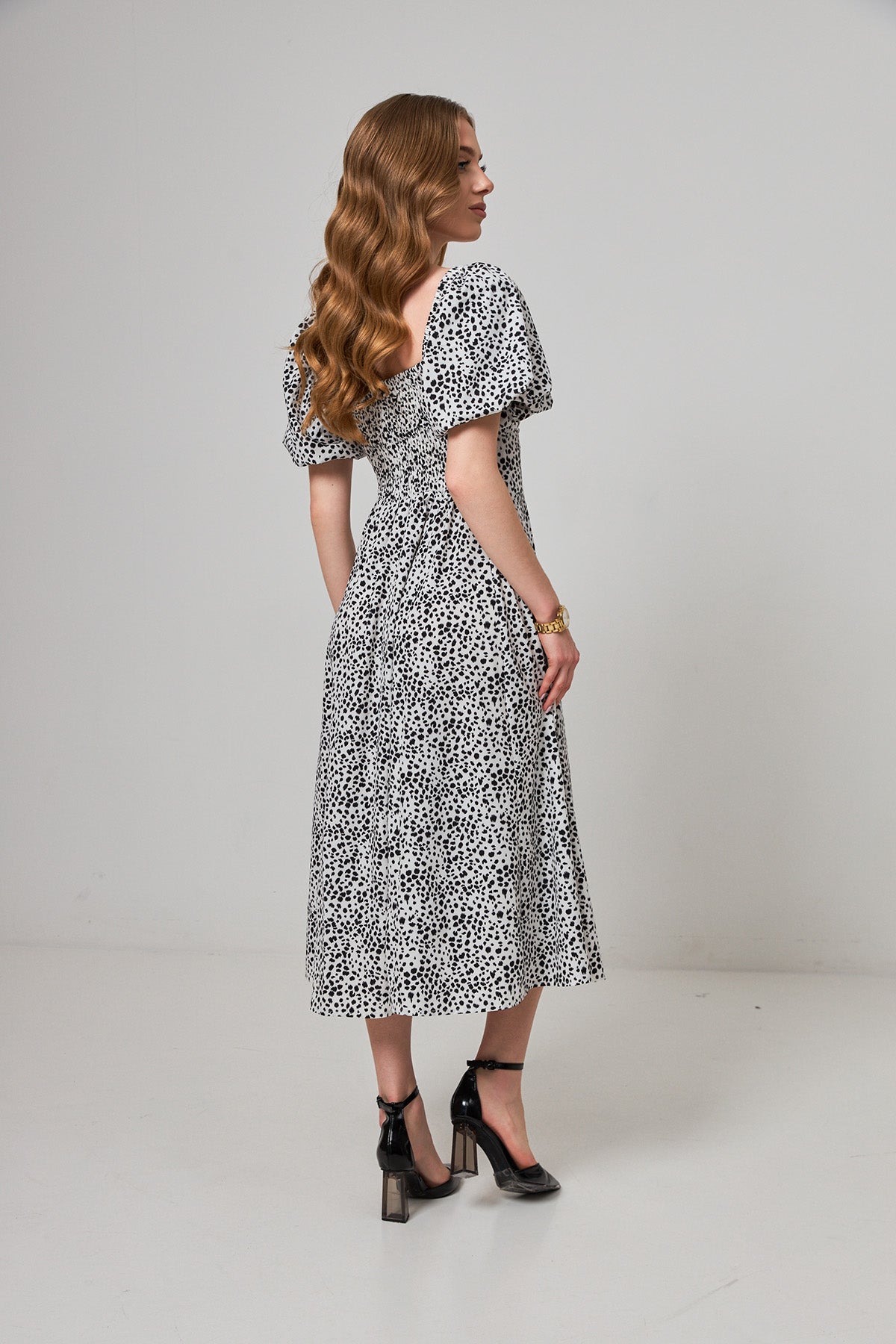 Створіть бездоганний жіночний образ із нашою сукнею в довжині мідаксі. Поєднання класичного принту та летючого силуету робить цю модель ідеальним вибором як для особливих подій, так і для романтичних прогулянок містом.